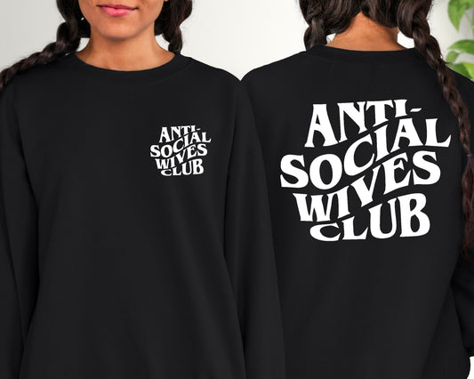 Anti Social Wives Club Sweatshirt Printed Front and Back, Wife Sweatshirt, Wife Shirt, Bride Sweatshirt. Anti Social shirt, Anti Social Wife