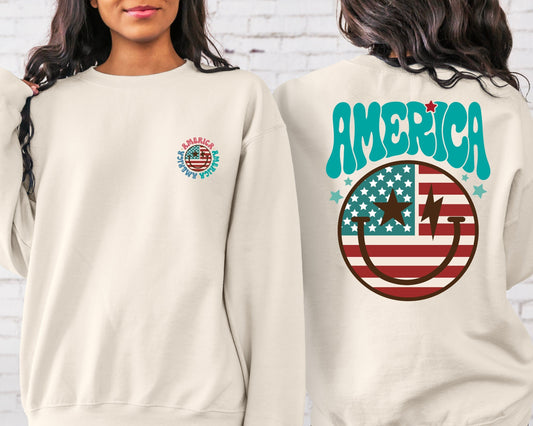 4th of July Smile Sweatshirt, America Sweatshirt, Merica Sweater, USA Red White and Blue Shirt, July Four Hoodie, American Flag Smile Shirt