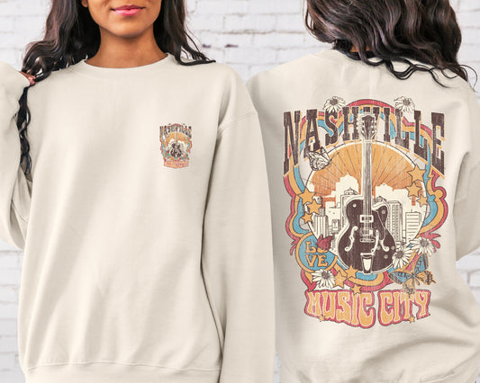 Nashville Tennessee Crewneck Sweatshirt,Nashville Music Sweater, Music City, Hoodie,Tennessee Sweatshirt , DTG, BOHO, Cowboy, Cowgirl Desert