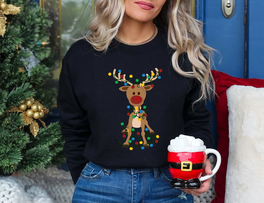 Reindeer Christmas Sweatshirt, Christmas Family Sweatshirt, Christmas Lights Sweatshirt, Merry Christmas Hoodie, Christmas Antler Shirt