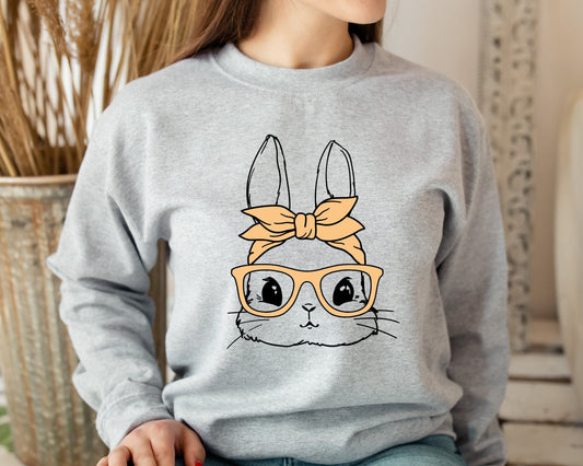 Bunny With Glasses Sweatshirt, Ladies Easter Bunny Sweatshirt, Easter Bunny Sweater, Easter Hoodie For Women, Bunny With Glasses Hoodie