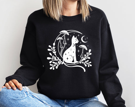 Celestial Cat Sweatshirt, Womens Crewneck Sweatshirt, Moon Sweatshirt, Yoga Sweatshirt, Spiritual Sweatshirt, Witchy Hoodie, Gifts for Her
