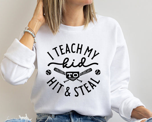 Baseball Sweatshirt, Baseball Player Gift, Funny Baseball Mom Sweatshirt, Softball Hoodie,Softball Mom Shirt,I Teach My Kid To Hit And Steal