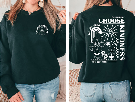 Choose Kindness Sweatshirt,Be Kind Hoodie,Smiley Face Crewneck, Positive Shirt, Retro Be Kind Sweater,Boho Kindness Sweatshirt,Boho Rainbow