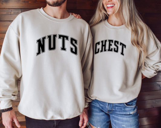 Chest And Nuts Couples Christmas Sweatshirt, Funny Christmas Sweater, Couple Christmas Hoodies, Christmas Humor Sweater,Holiday Sweatershirt