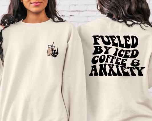 Coffee Addict Sweatshirt, Gift For Her, Coffee and Anxiety Tee Hoodie, Fueled By Iced Coffee and Anxiety Sweatshirt, Funny Quote Shirts