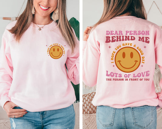 Dear Person Behind Me Sweatshirt, Be Kind Sweatshirt, Aesthetic Sweater, Inspirational Sweater, Trendy Hoodie, Smiley Hoodie, Youth SweaterVendor:CustomeesRegular price $24.99Regular priceUnit price / per-