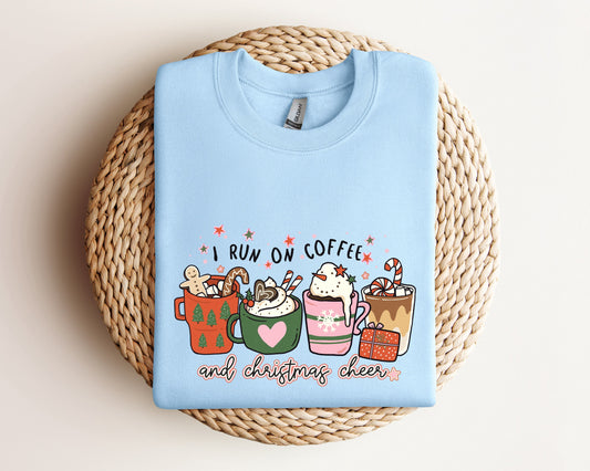 I Run on Coffee and Christmas Cheer Sweatshirt, Coffee Christmas Sweater, Christmas Coffee Hoodie, Holiday Apparel, Funny Christmas Sweater