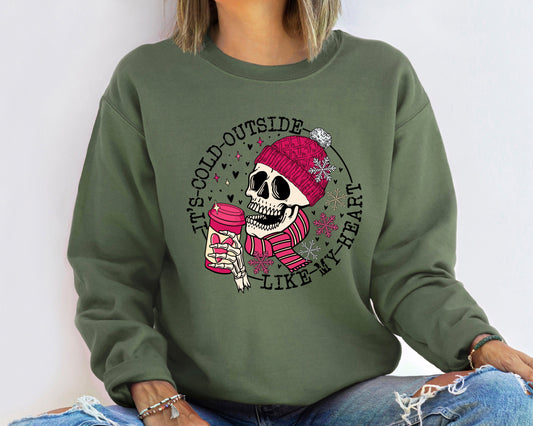 It's Cold Outside Like My Heart Skeleton Sweatshirt,Valentine's Day Skeleton Gift Winter Skull Hoodie,Cute Skeleton Tee,Funny Skeleton ShirtVendor:My StoreRegular price $24.99Regular priceUnit price / per-