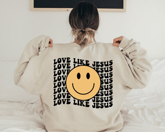 Love Like Jesus Sweatshirt, Aesthetic Christian Sweatshirt, Smiley Face Jesus Hoodie, Religious Gift For Christian, Trending SweatshirtVendor:My StoreRegular price $24.99Regular priceUnit price / per-