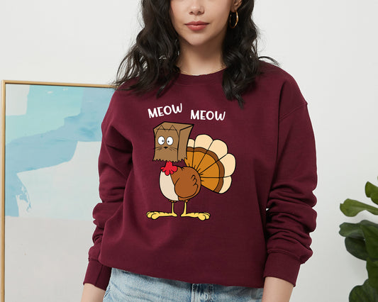 Meow Meow Funny Turkey Thanksgiving Sweatshirt, Thanksgiving Turkey Sweater, Family Thanksgiving Hoodie, Thanksgiving Hoodie, Autumn Sweater
