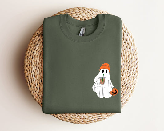 Cute Ghost Drinking Coffee Sweatshirt, Ghost Ice Coffee Hoodie, Spooky Season, Fall Coffee Lover Hoodie, Halloween Party Hoodie, Fall Hoodie