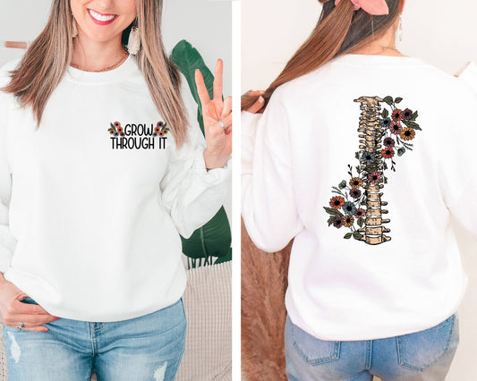 Grow Through It Sweatshirt, Floral Spine Hoodie, Motivational Sweatshirts, Positive Saying Sweatshirts, Mental Health Warrior Sweatshirt
