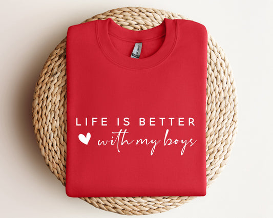 Life is Better With My Boys Sweatshirt and Hoodie, Mom of Boys Sweatshirt, Mom of Boys Crewneck, Mom of Boys Sweater, Gift For Mom