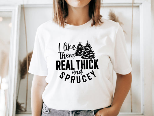 I like them real thick and sprucy Shirt, funny Christmas sweatshirt, Christmas sweatshirt, holiday sweatshirt, ugly Christmas sweater