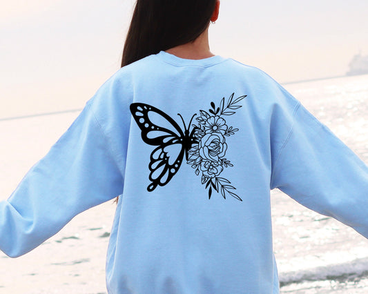 Floral Butterfly Sweatshirt, Butterfly Lover Sweater, Animal Sweatshirt, Animal Lover Gift, Butterfly Graphic Sweatshirt, Butterfly Hoodie