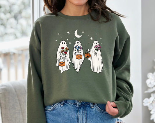 Floral Ghost Sweatshirt, Halloween Ghost Sweater, Floral Ghost Hoodie, Funny Halloween Crewneck, 2023 Happy Halloween, Spooky Season Sweater