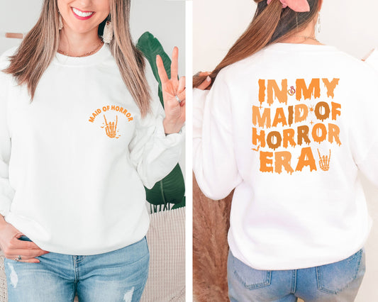In My Maid Of Horror Era Sweatshirt, Maid Of Honor Sweater, Halloween Bridesmaid Hoodie, Halloween Bachelorette Sweater, Wedding Crewneck