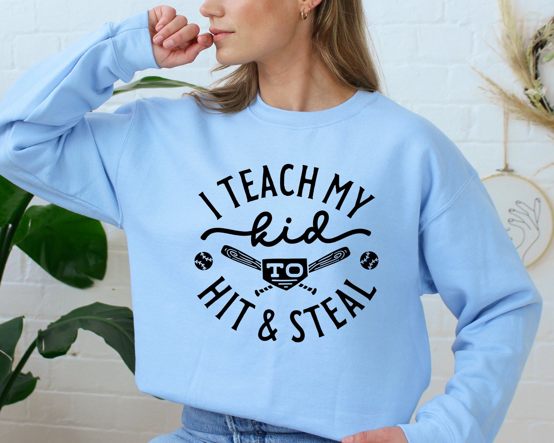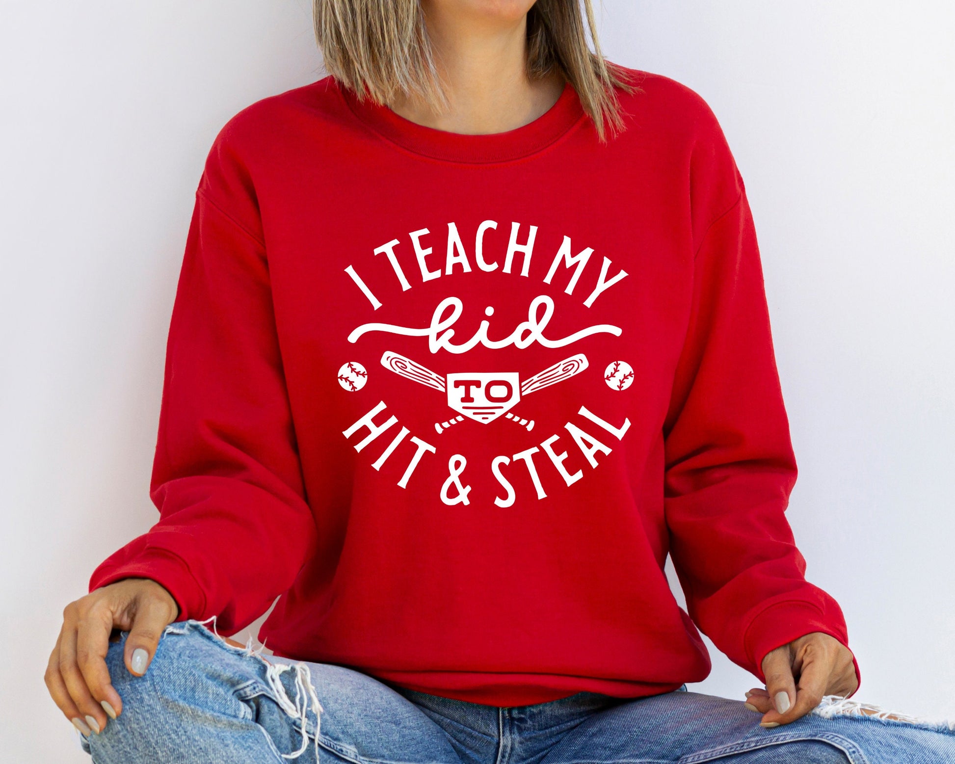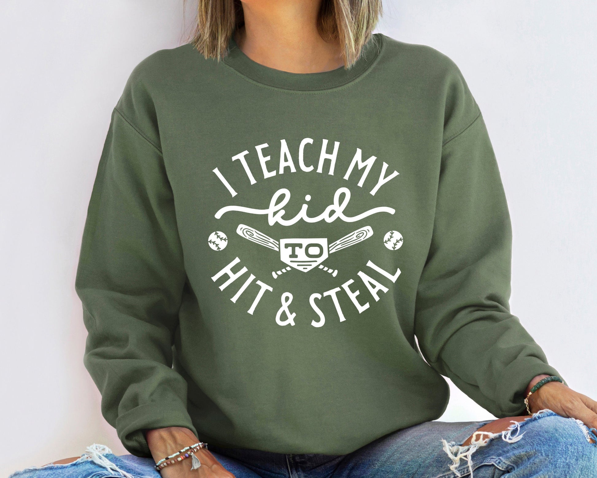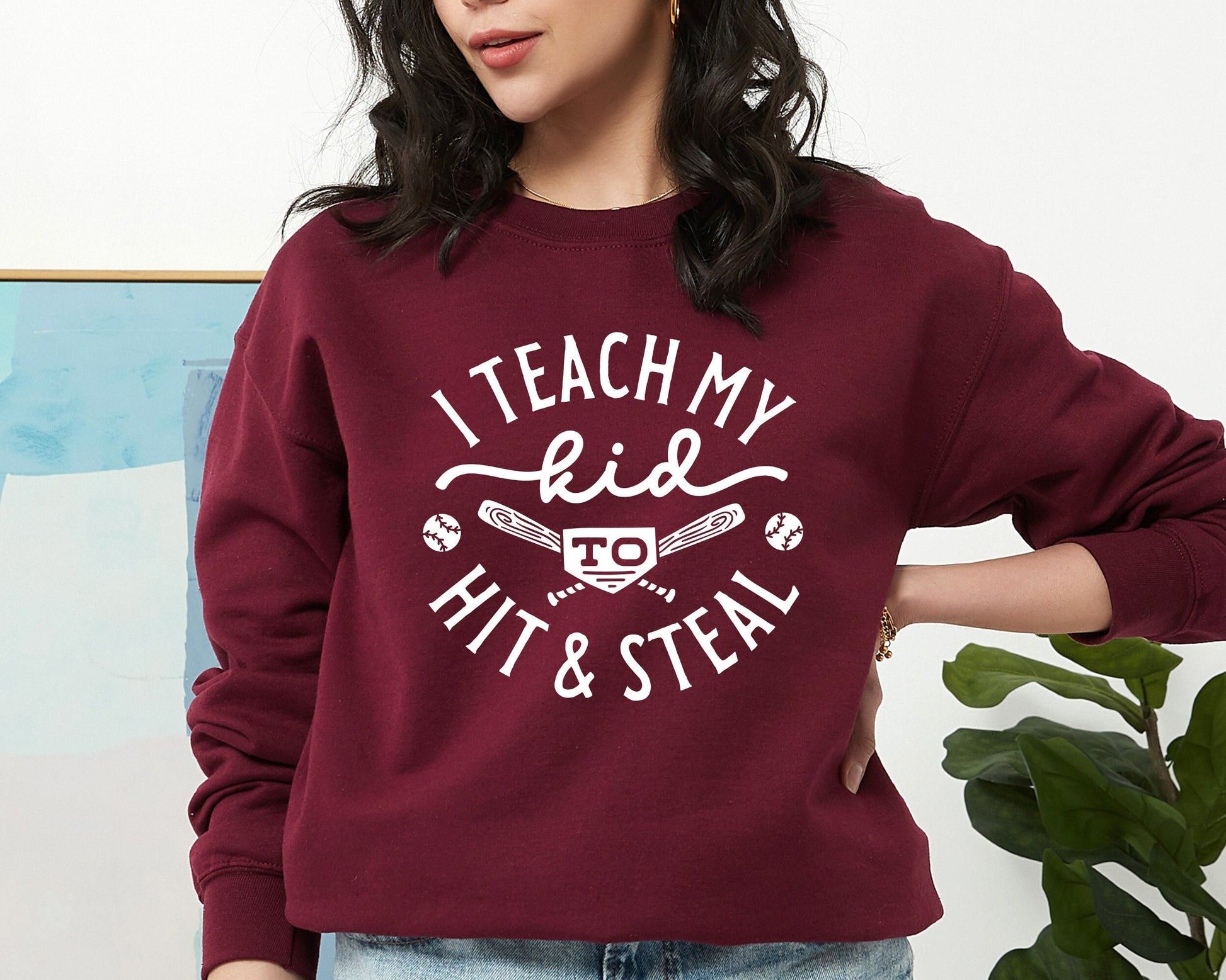 Baseball Sweatshirt, Baseball Player Gift, Funny Baseball Mom Sweatshirt, Softball Hoodie,Softball Mom Shirt,I Teach My Kid To Hit And Steal