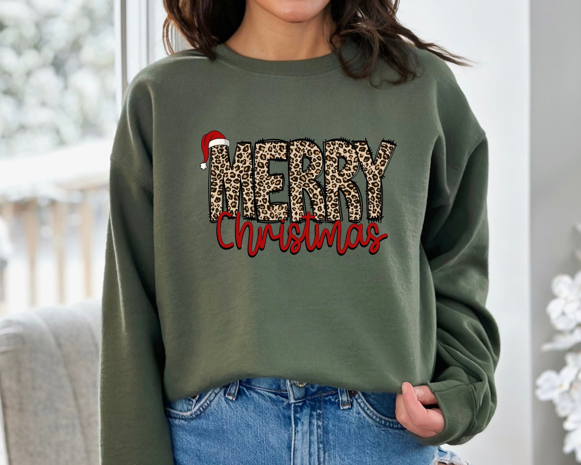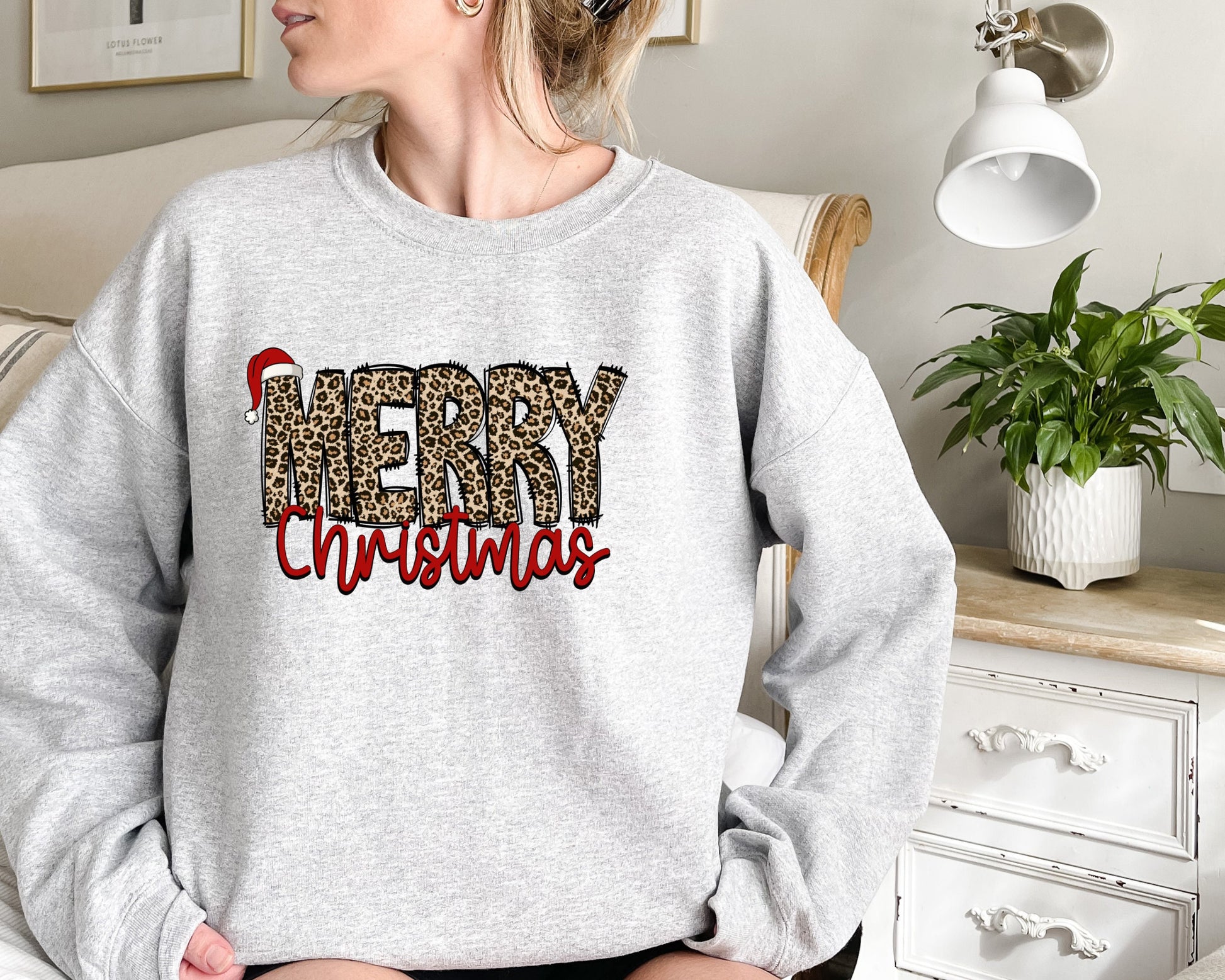 Buffalo Plaid Christmas Sweatshirt, Merry Christmas Hoodie, Christmas Family, Christmas Gift Crewneck, Holiday Gift, Leopard Sweater