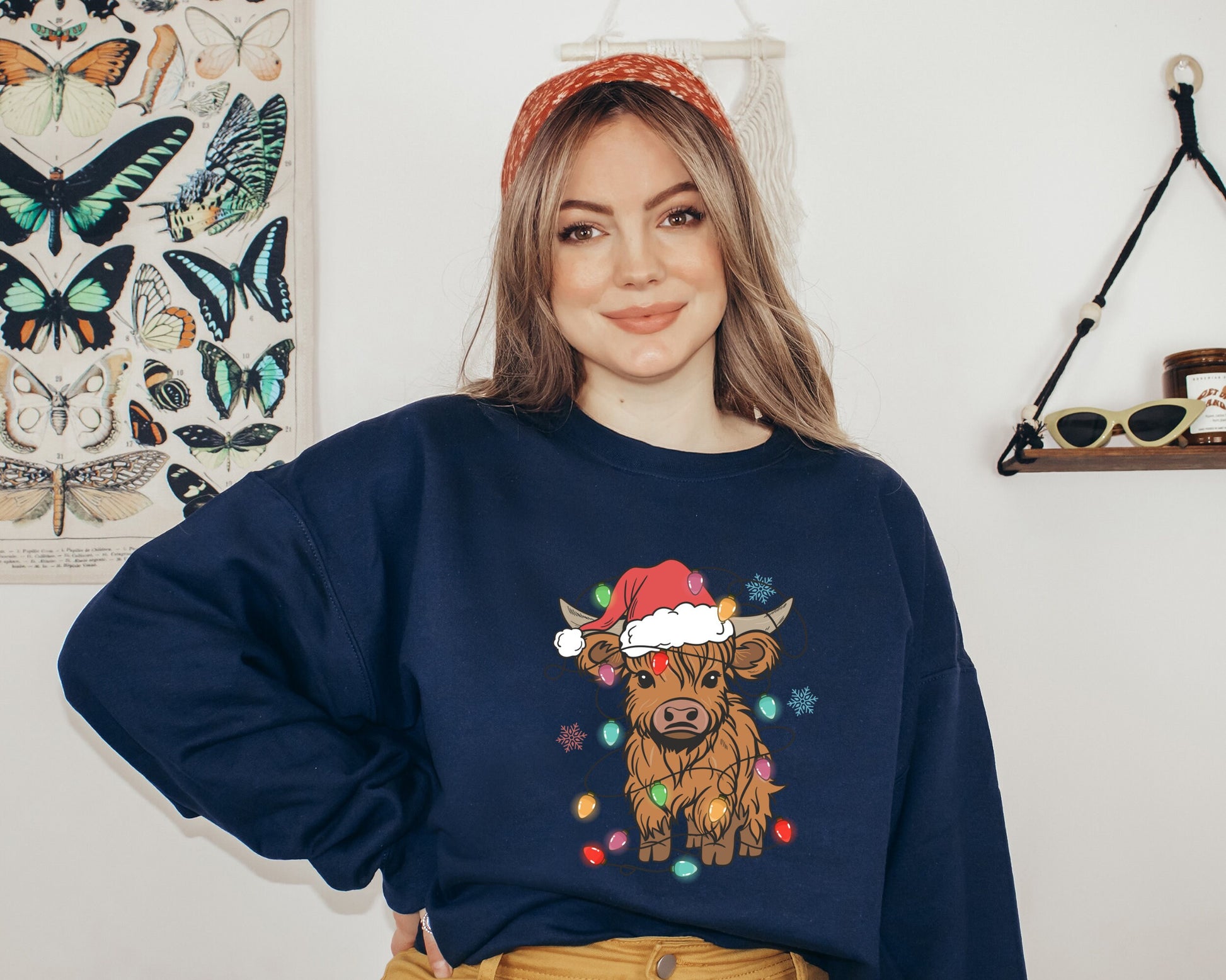 Christmas Cow Sweatshirt, Gift For Farmers, Western Lover Hoodie, Cowboy Sweater, Cute Cowgirl Hoodie, Highland Cow Hoodie, Heifer Sweater