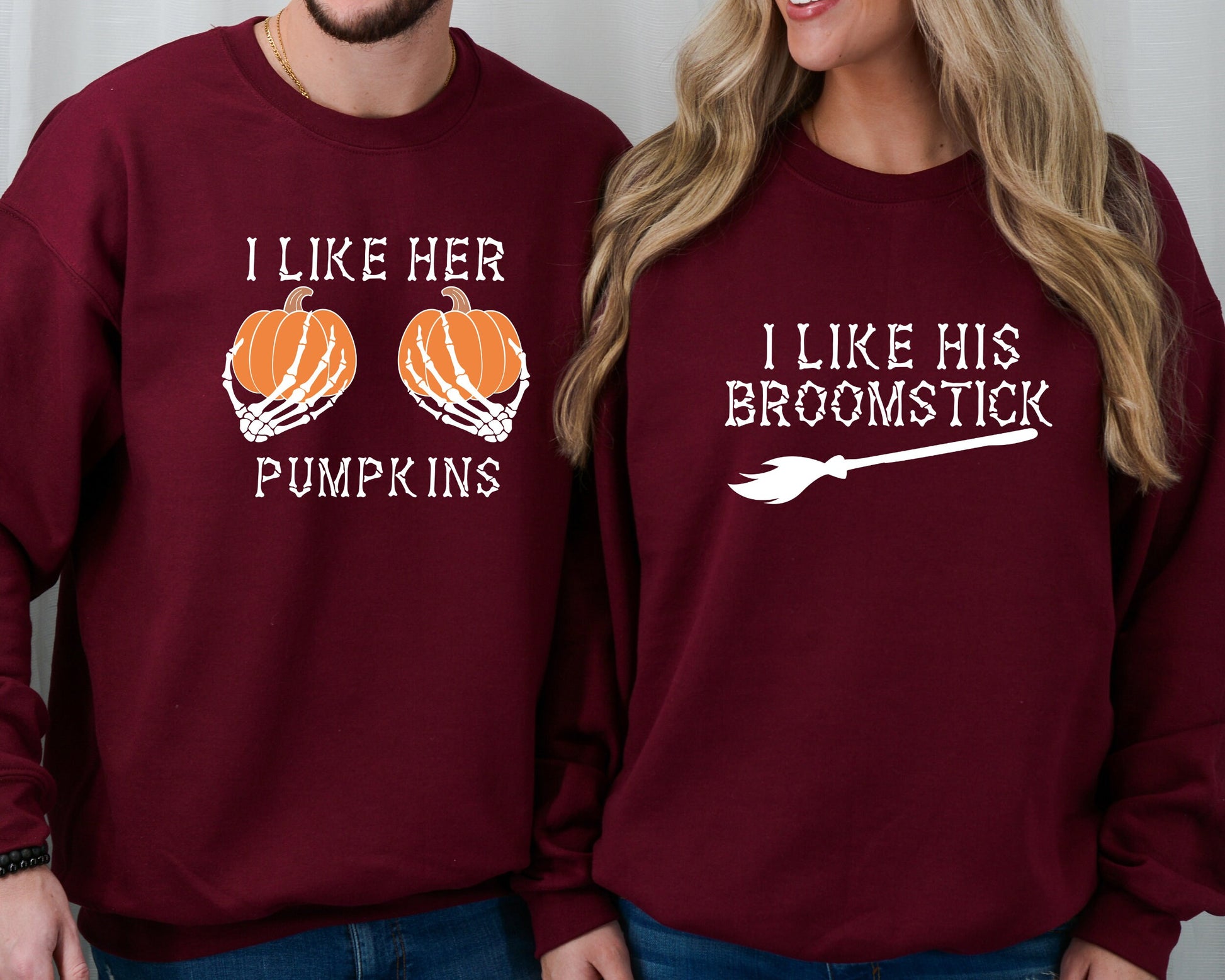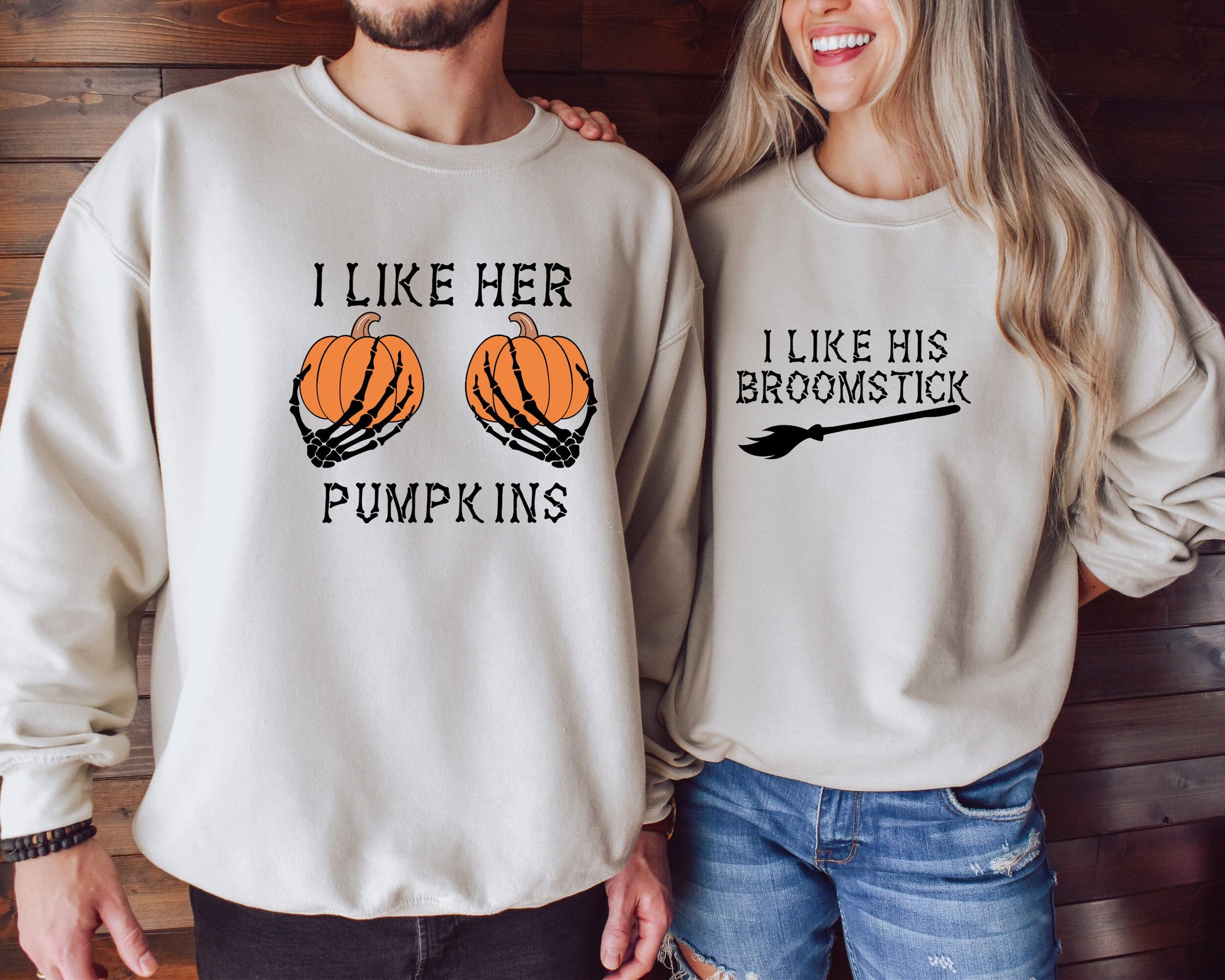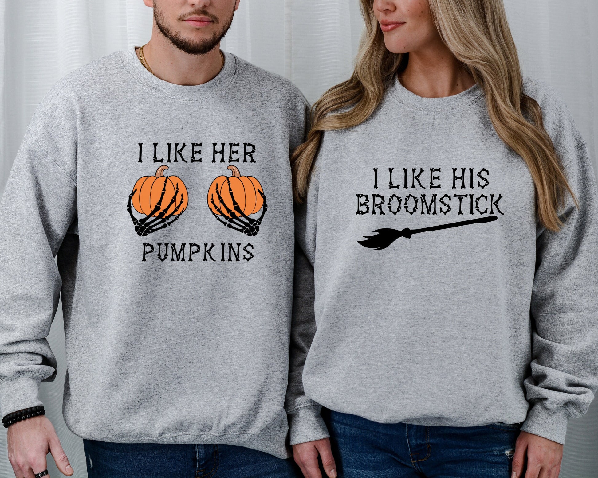 Couples Halloween Sweatshirt, Trick or Treating Parents Matching Hoodie, Halloween Party Sweater, Halloween Sweatshirt Broomsticks Pumpkins
