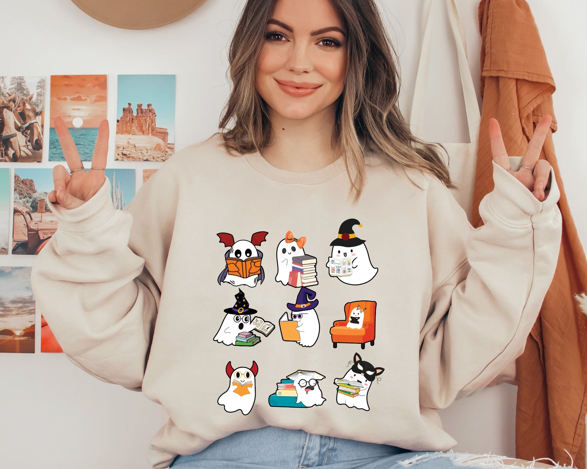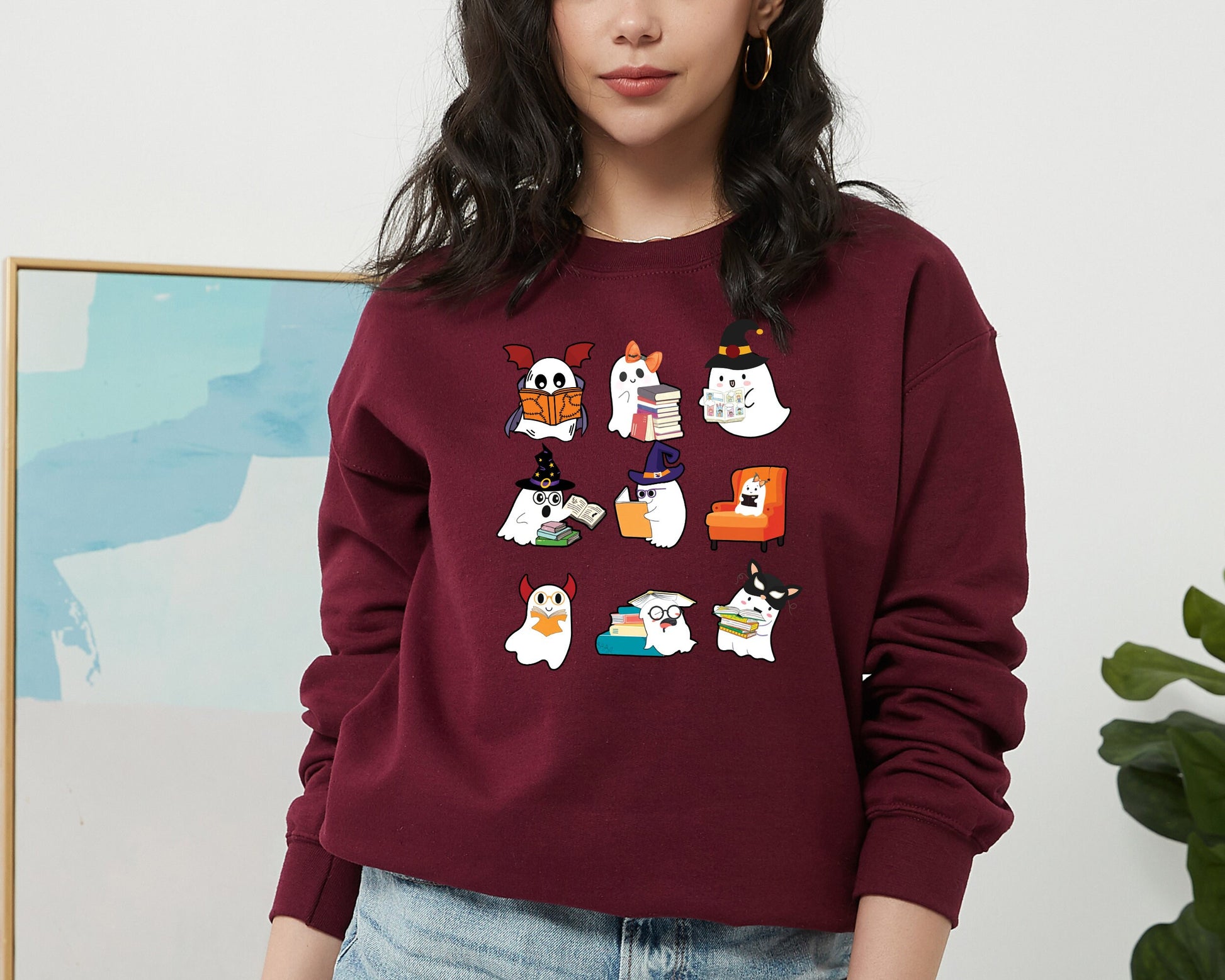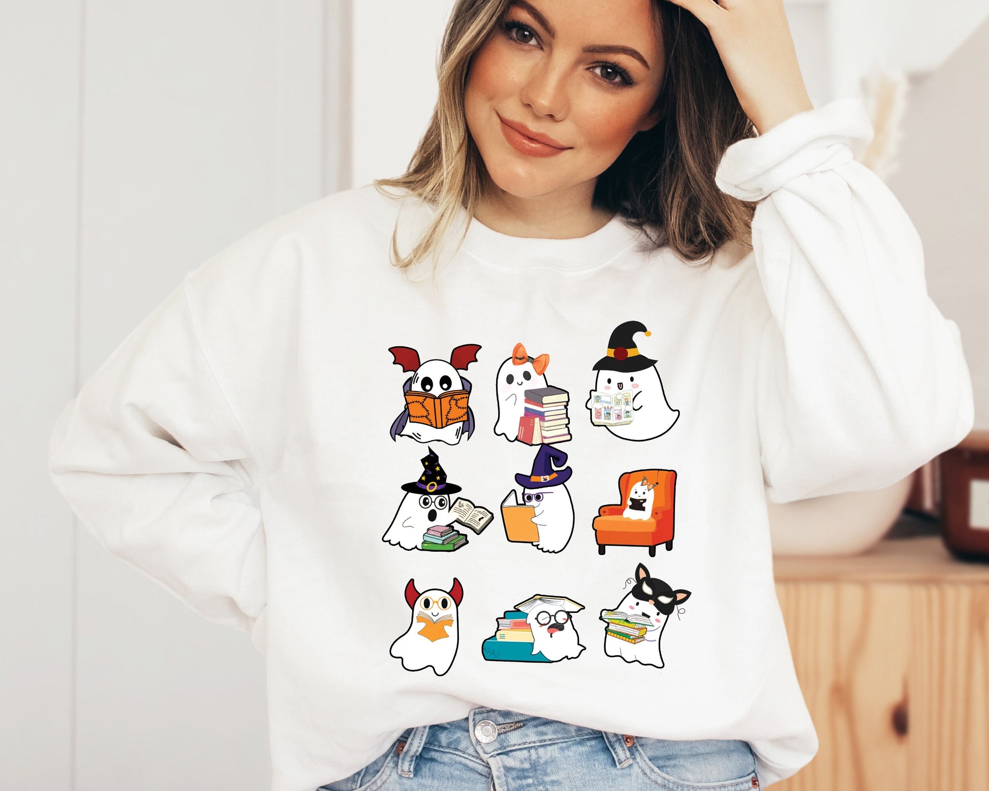 Ghost Reading Sweatshirt, Teacher Halloween Hoodie, Librarian Sweater, Book Lover Hoodie, Reading Sweatshirt, Halloween School Crewneck