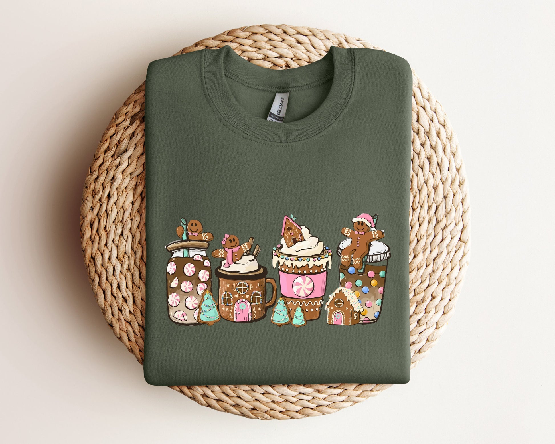 Gingerbread Christmas Coffee Sweatshirt, Christmas Coffee Sweater, Halloween Holiday Hoodie, Xmas Sweatshirt, Coffee Lover Gift Crewneck