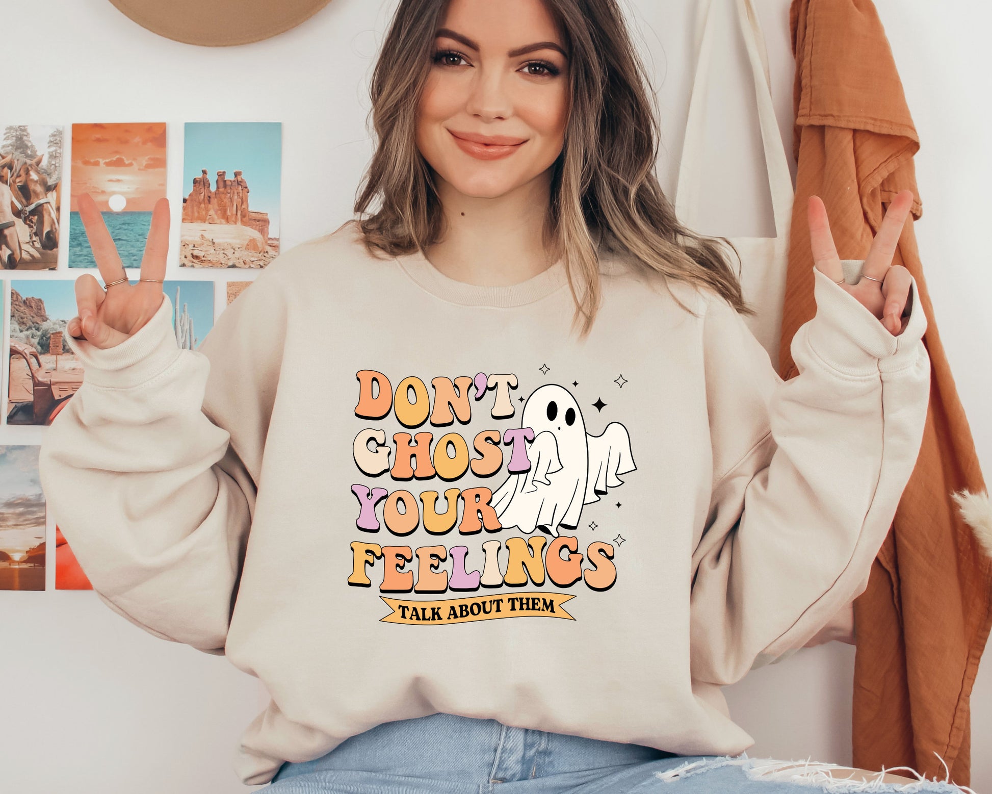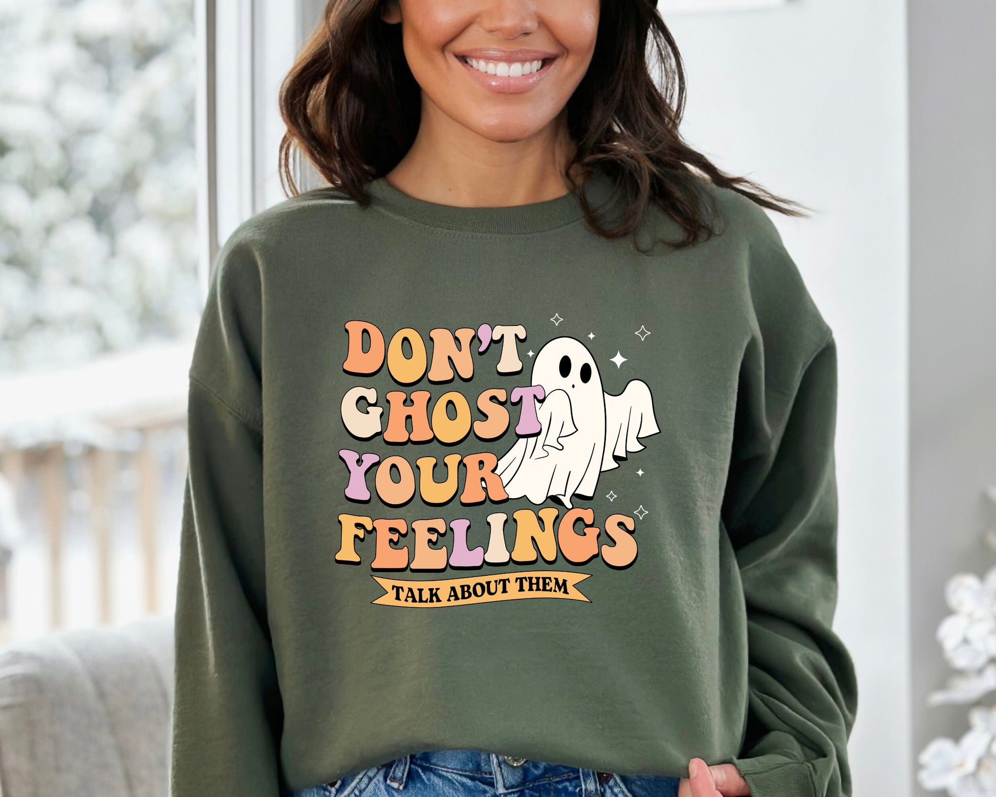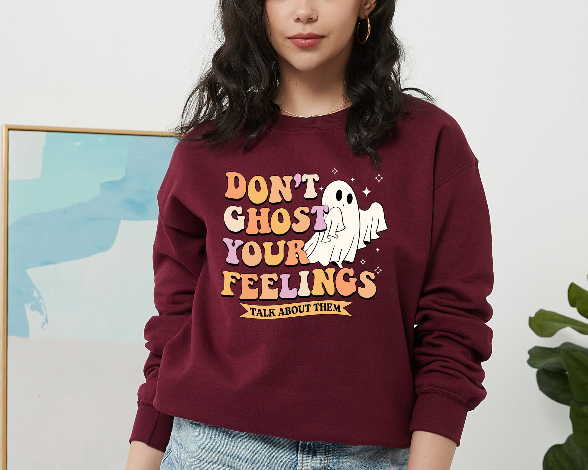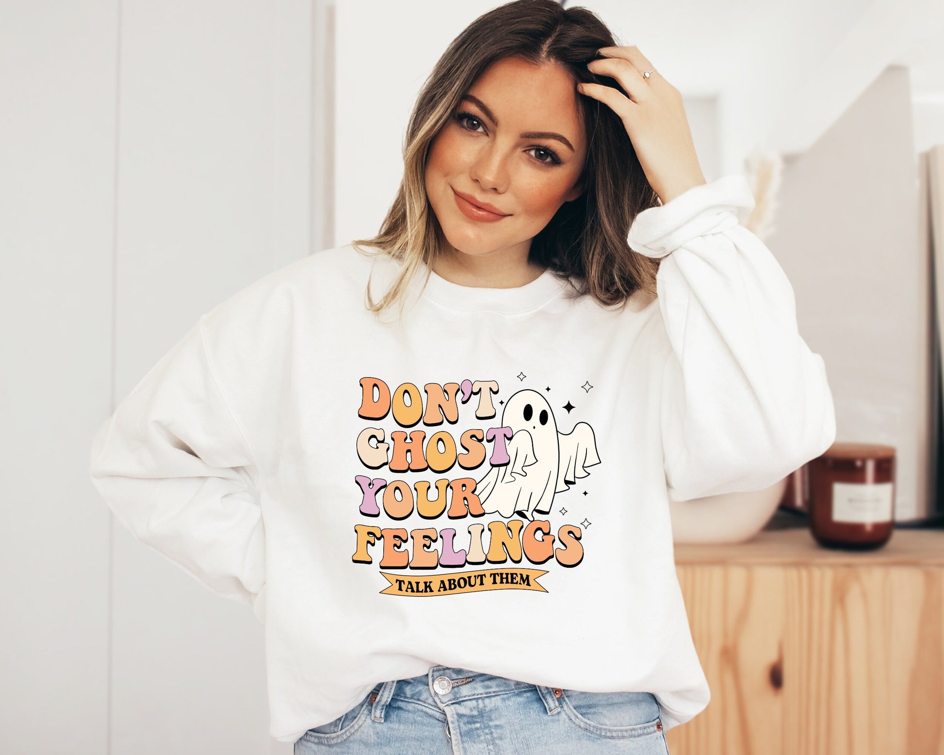 Halloween Mental Health Sweatshirt, Feel Your Feelings Sweater, Halloween Hoodie, Trendy Halloween Ghost Sweater, Mental Health Awareness