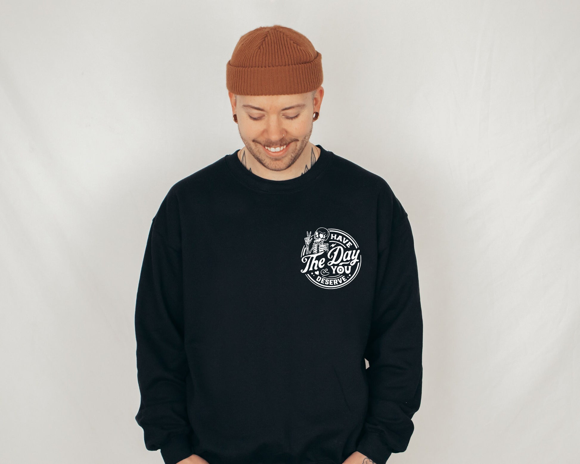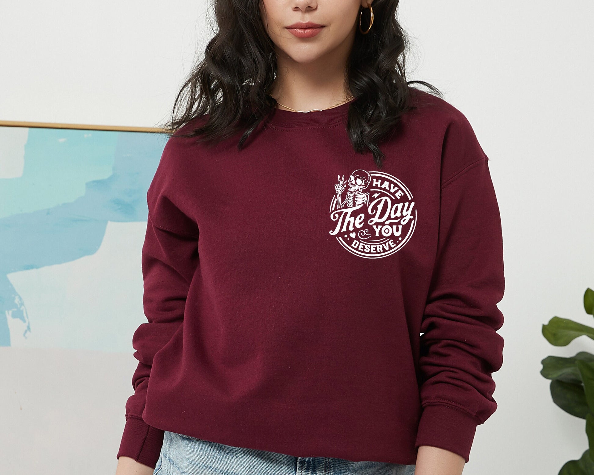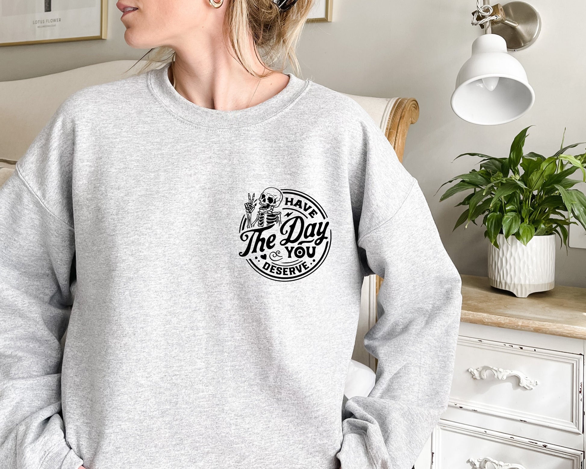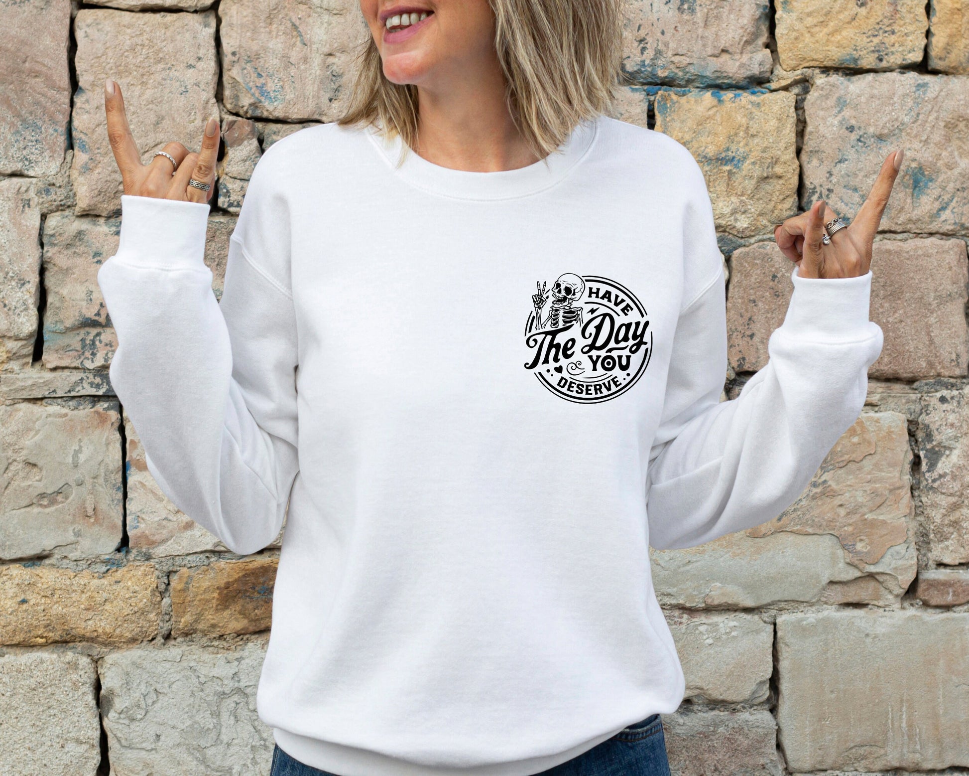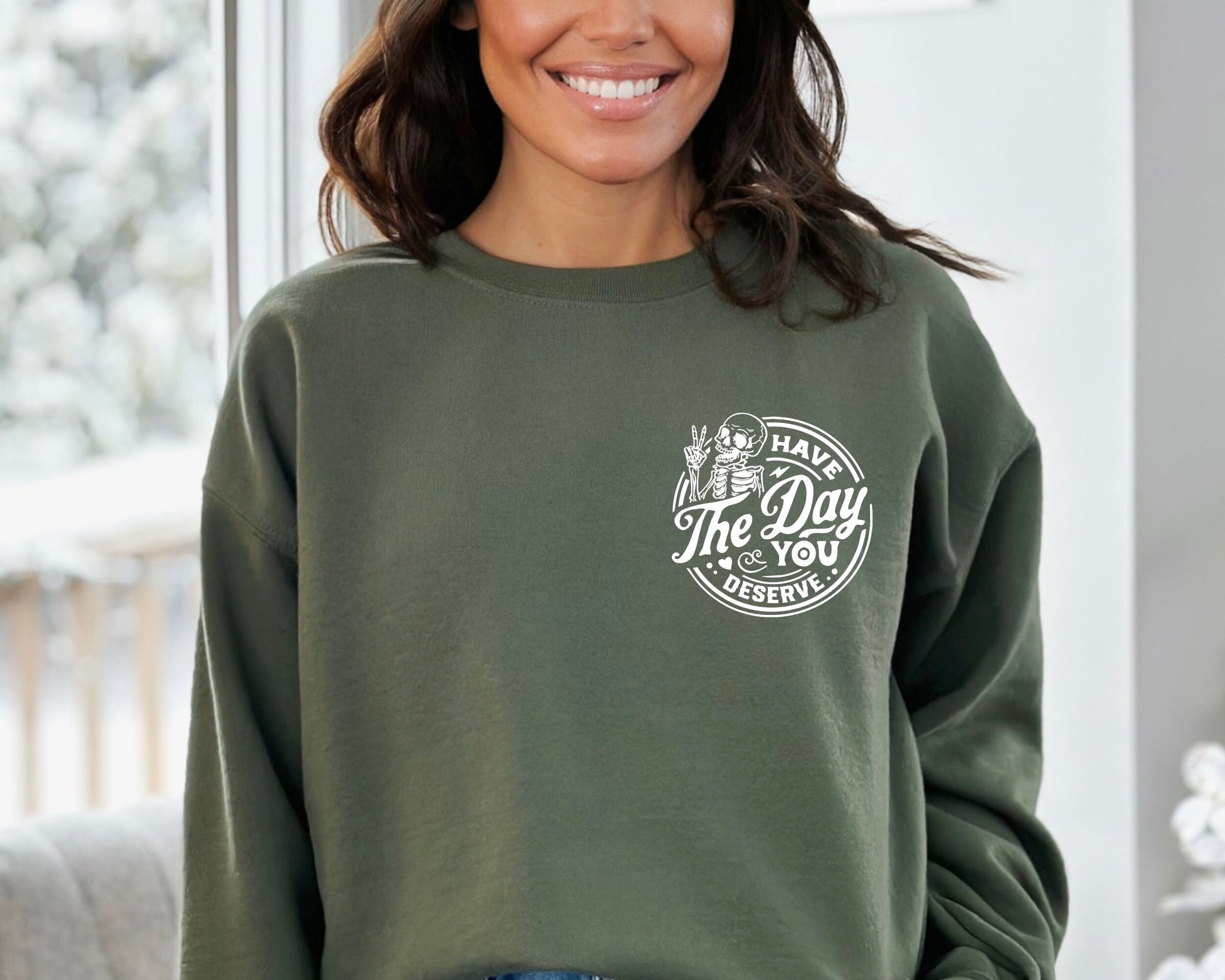Have The Day You Deserve Sweatshirt, Kindness Gift, Sarcastic Sweatshirt, Motivational Skeleton Hoodie, Positive Graphic Sweatshirt