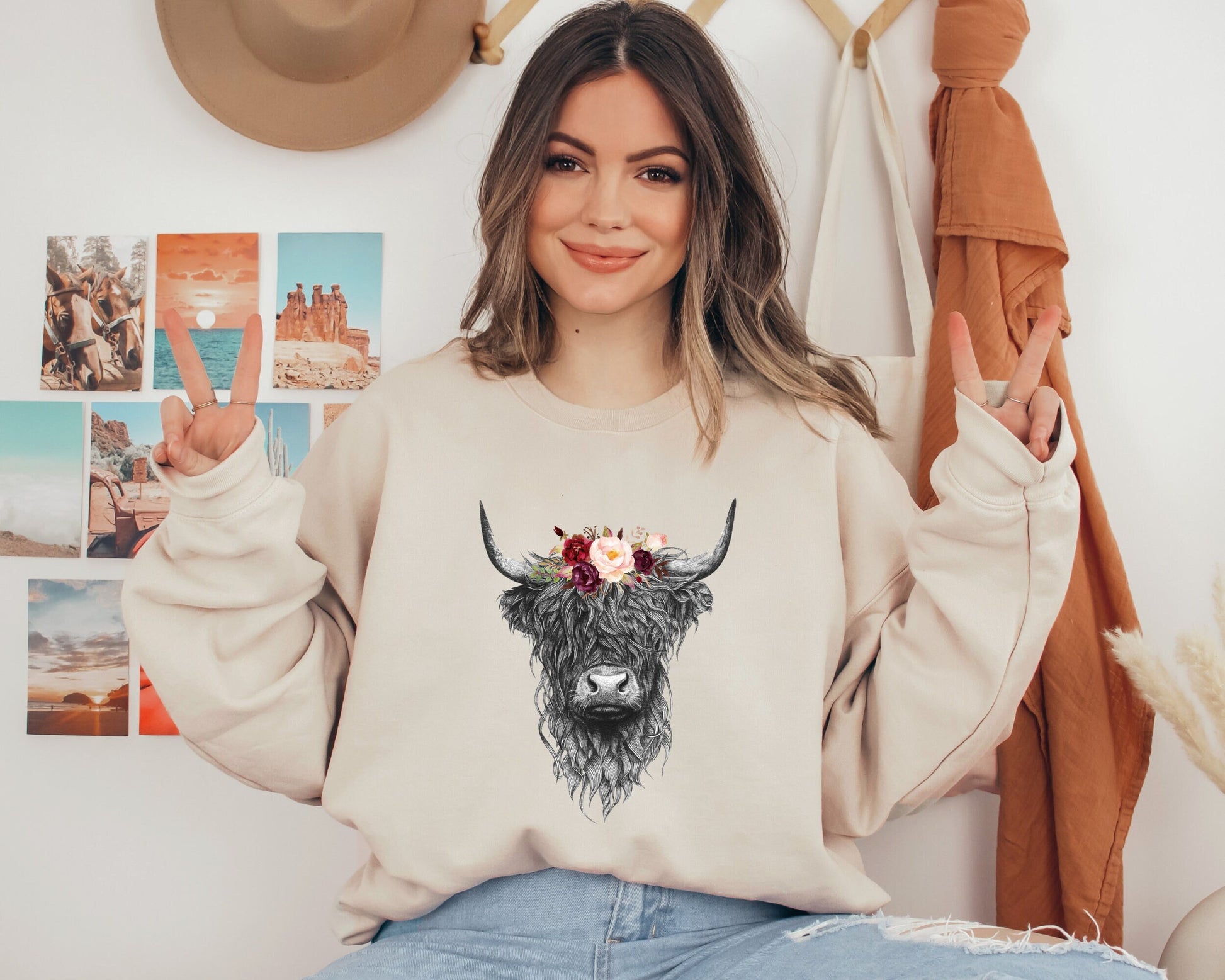 Highland Cow Sweatshirt, Country Hoodie, Western Sweatshirt, Highland Cow Hoodie, Highland Cow Sweatshirt, Western Clothes, Farm Sweater