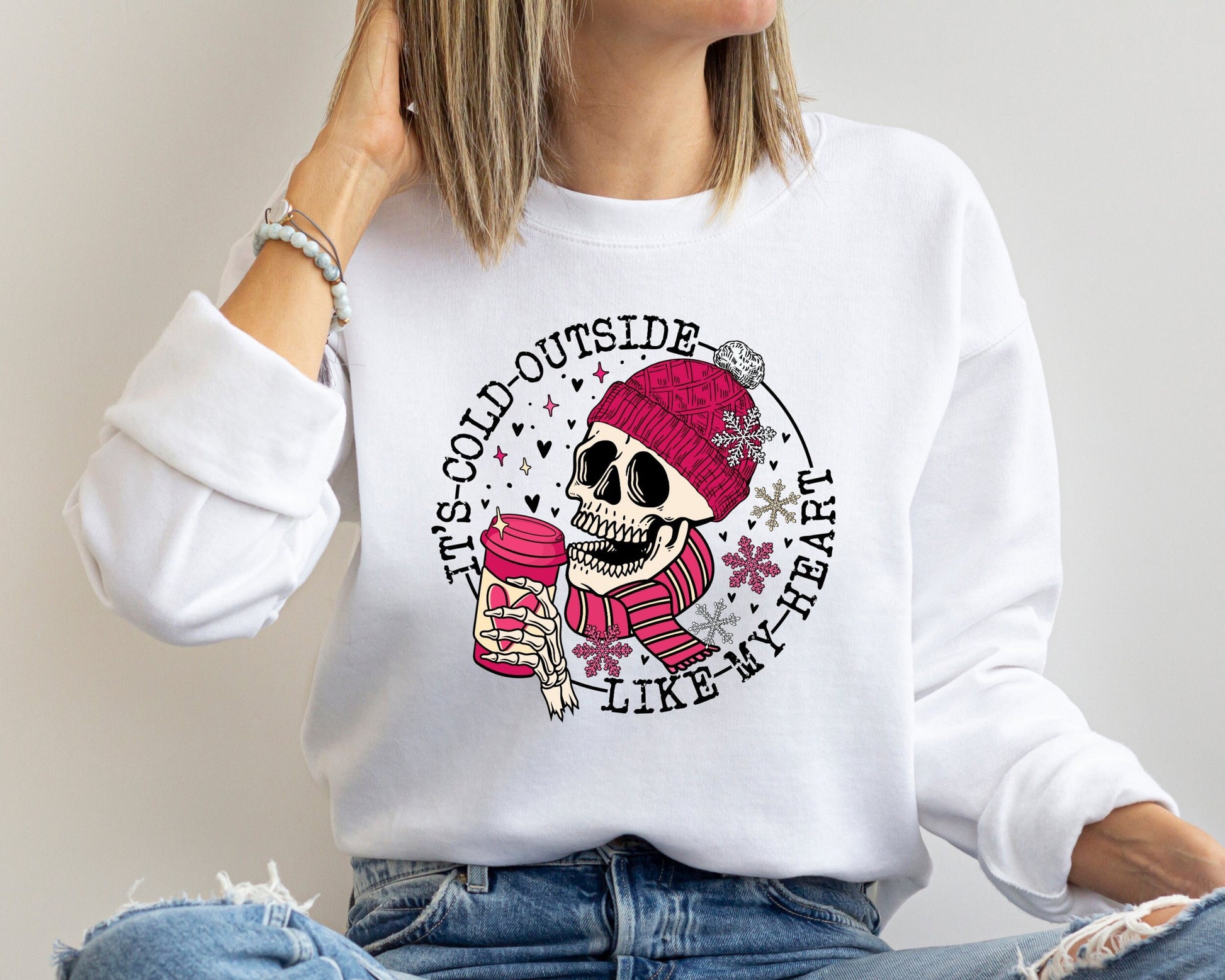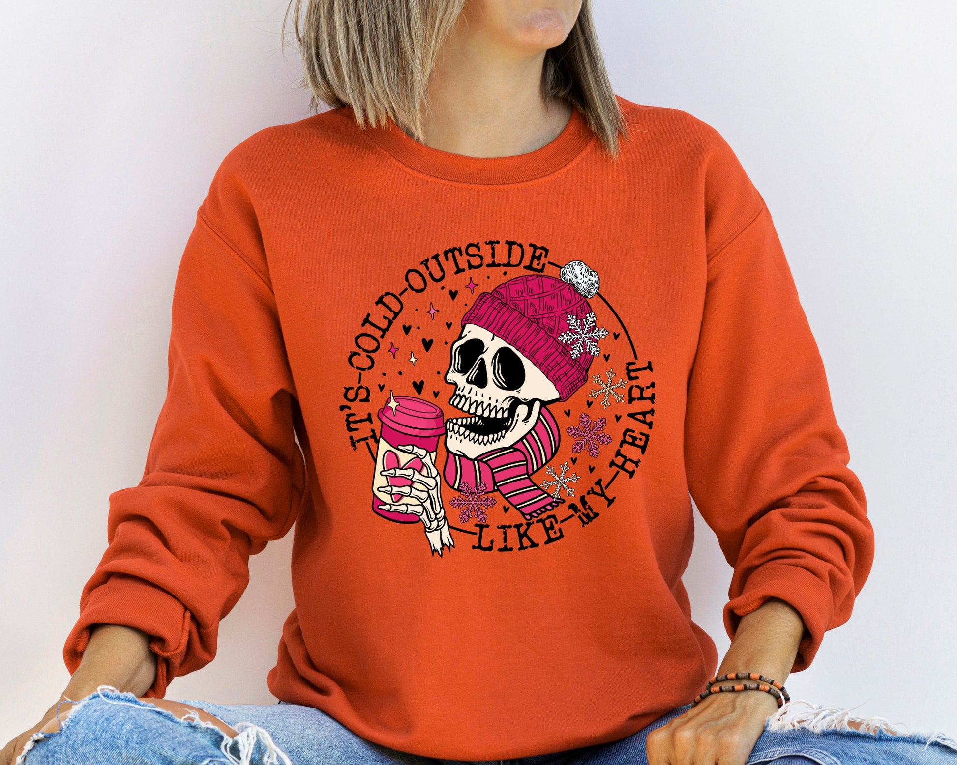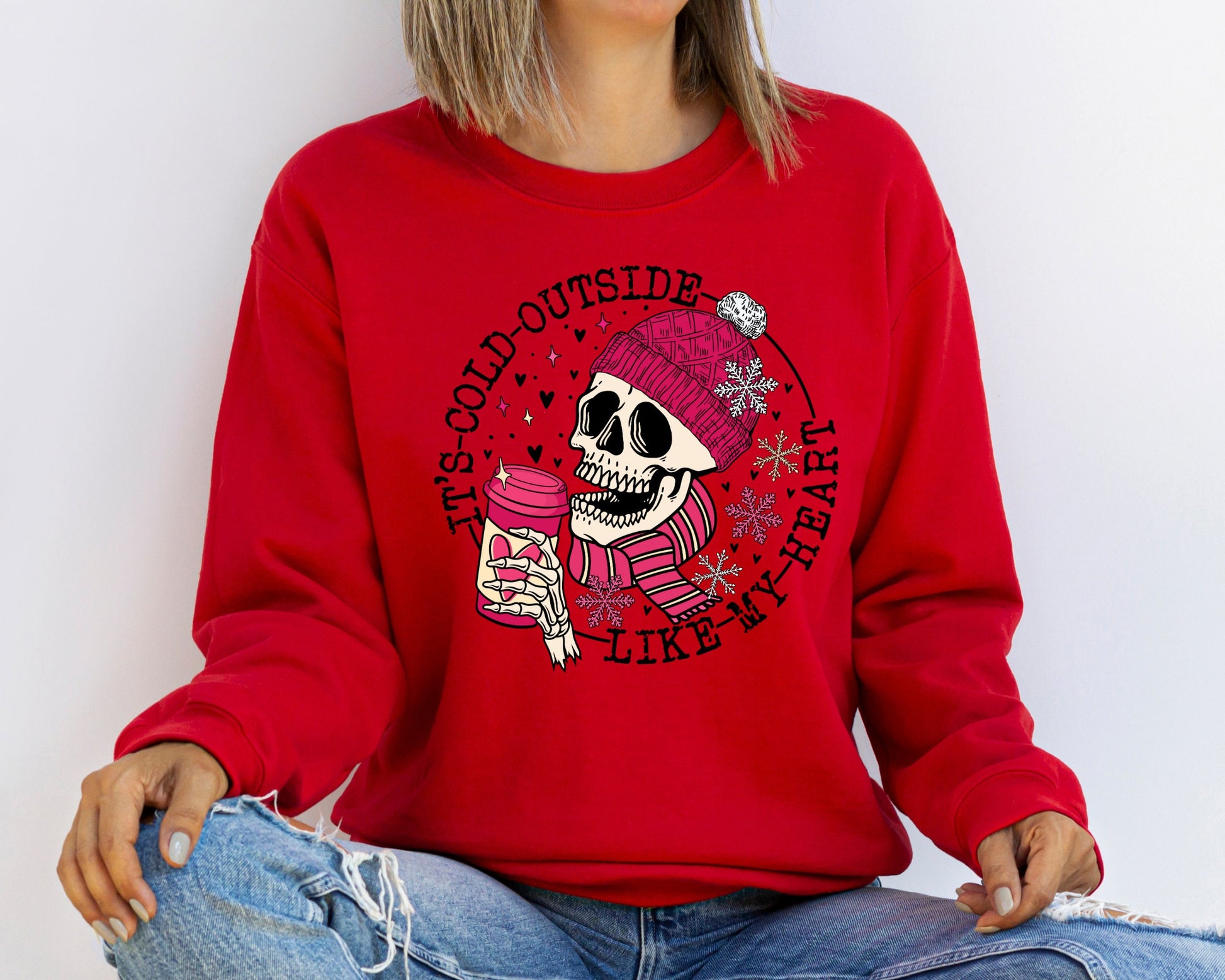 It's Cold Outside Like My Heart Skeleton Sweatshirt, Valentine's Day Skeleton Gift Winter Skull Hoodie, Cute Skeleton Tee,Funny Skeleton Shirt