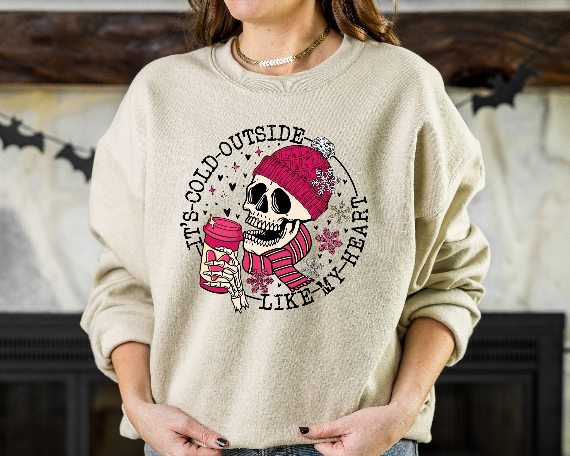 It's Cold Outside Like My Heart Skeleton Sweatshirt,Valentine's Day Skeleton Gift Winter Skull Hoodie,Cute Skeleton Tee,Funny Skeleton Shirt