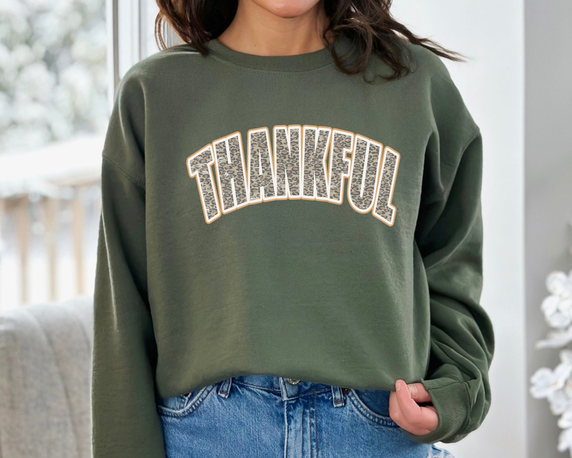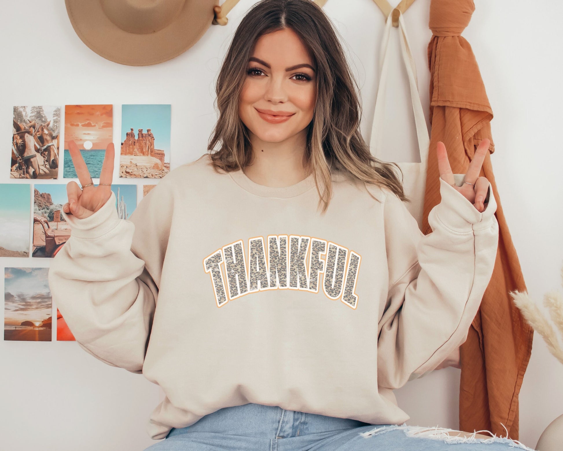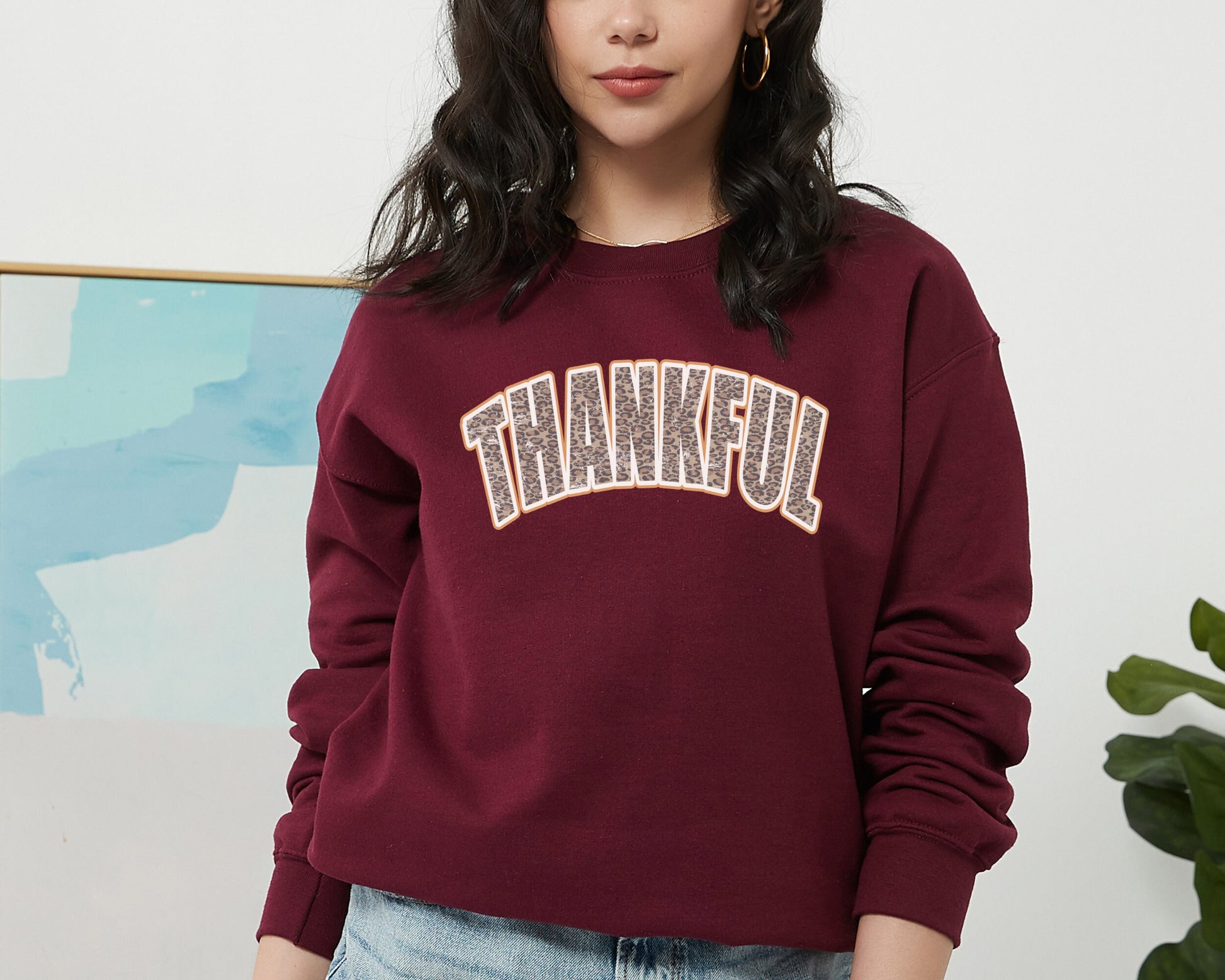 Leopard Thankful Sweatshirt, Thankful Hoodie, Womens Thanksgiving Sweater, Cute Thanksgiving Hoodie, Fall Clothing, Thankful Family Sweater