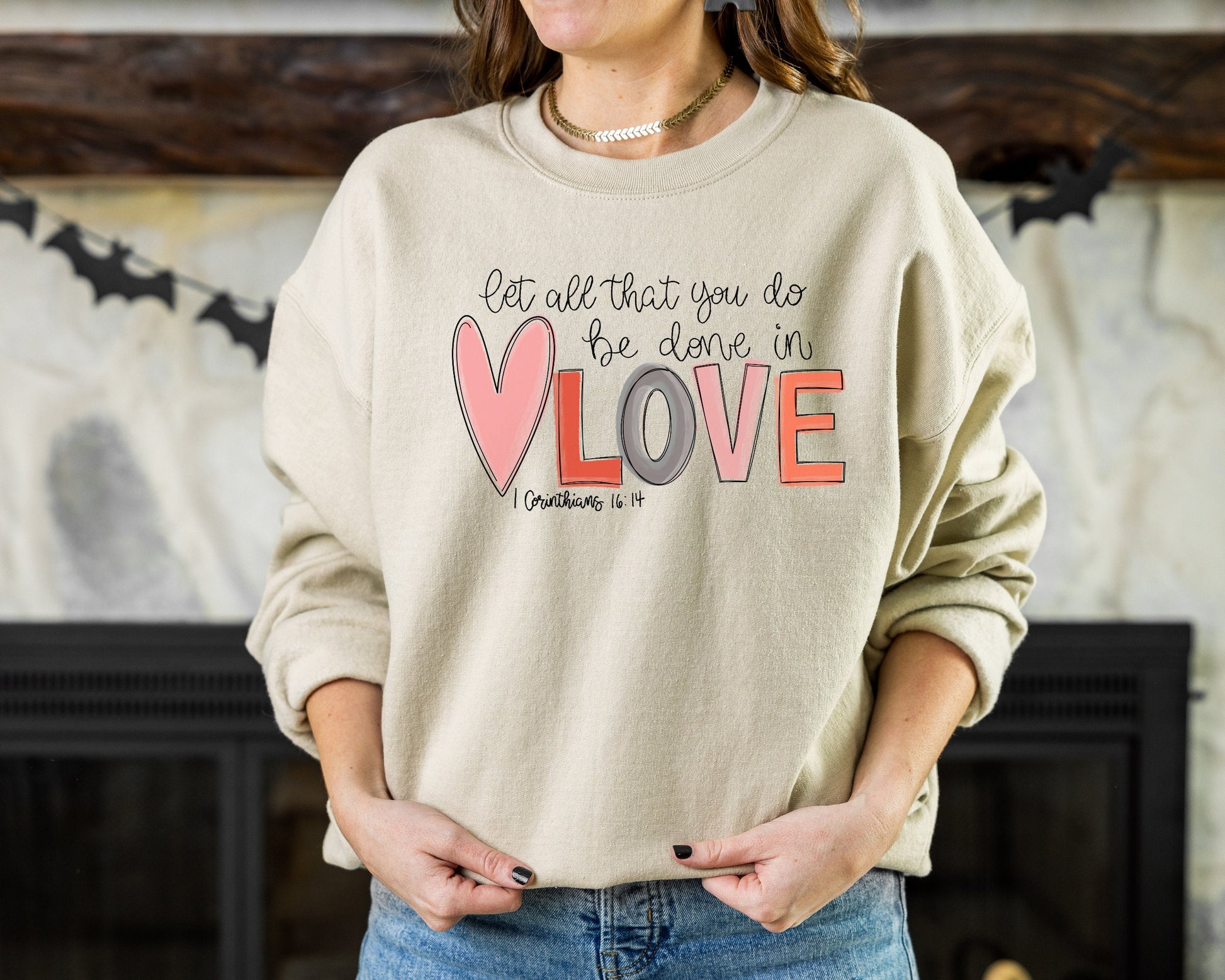 Let all that you do be done in Love Sweatshirt, Cute Valentine Sweatshirt, Love Sweatshirt, Trendy Sweatshirt, Gift for Valentine Hoodie