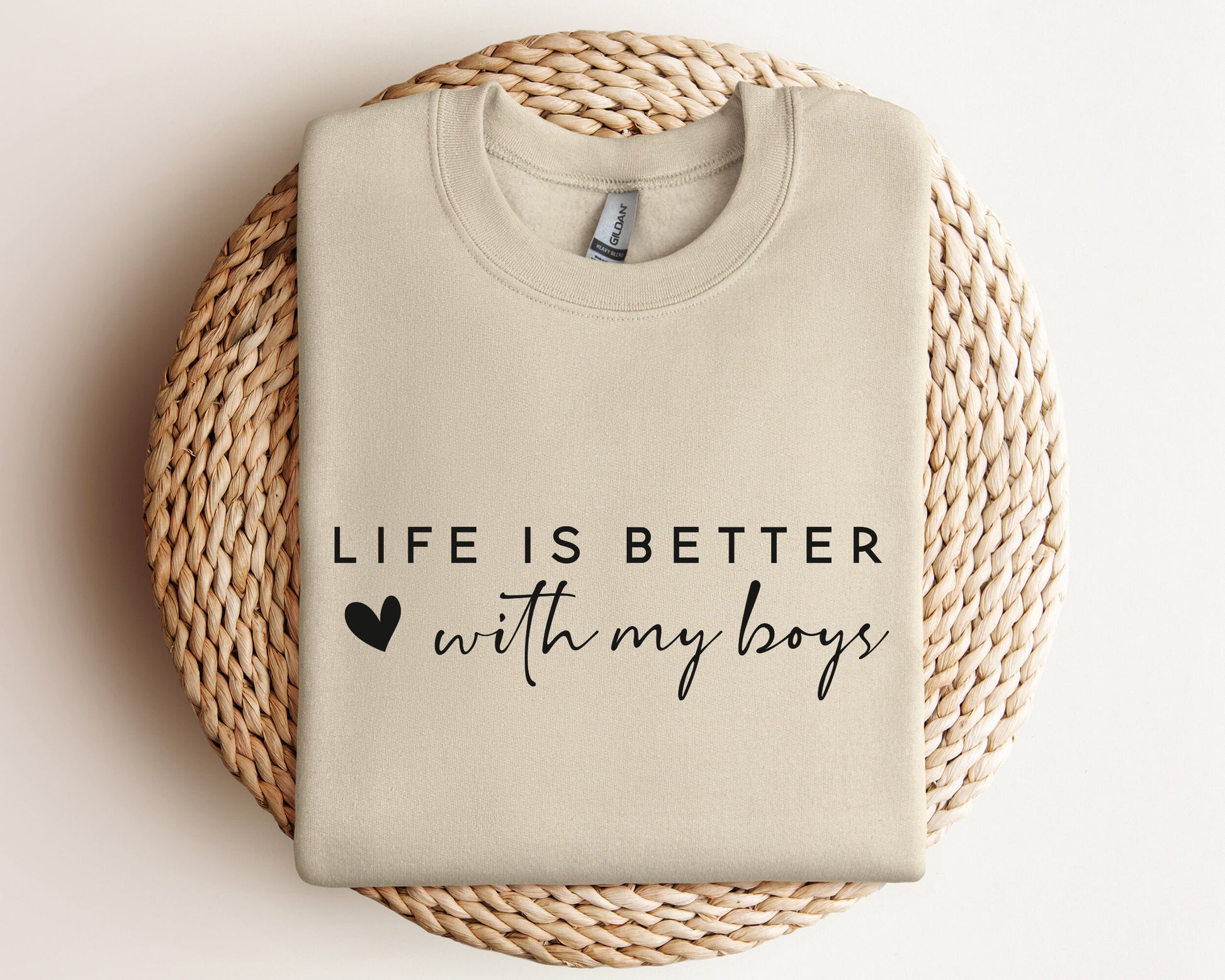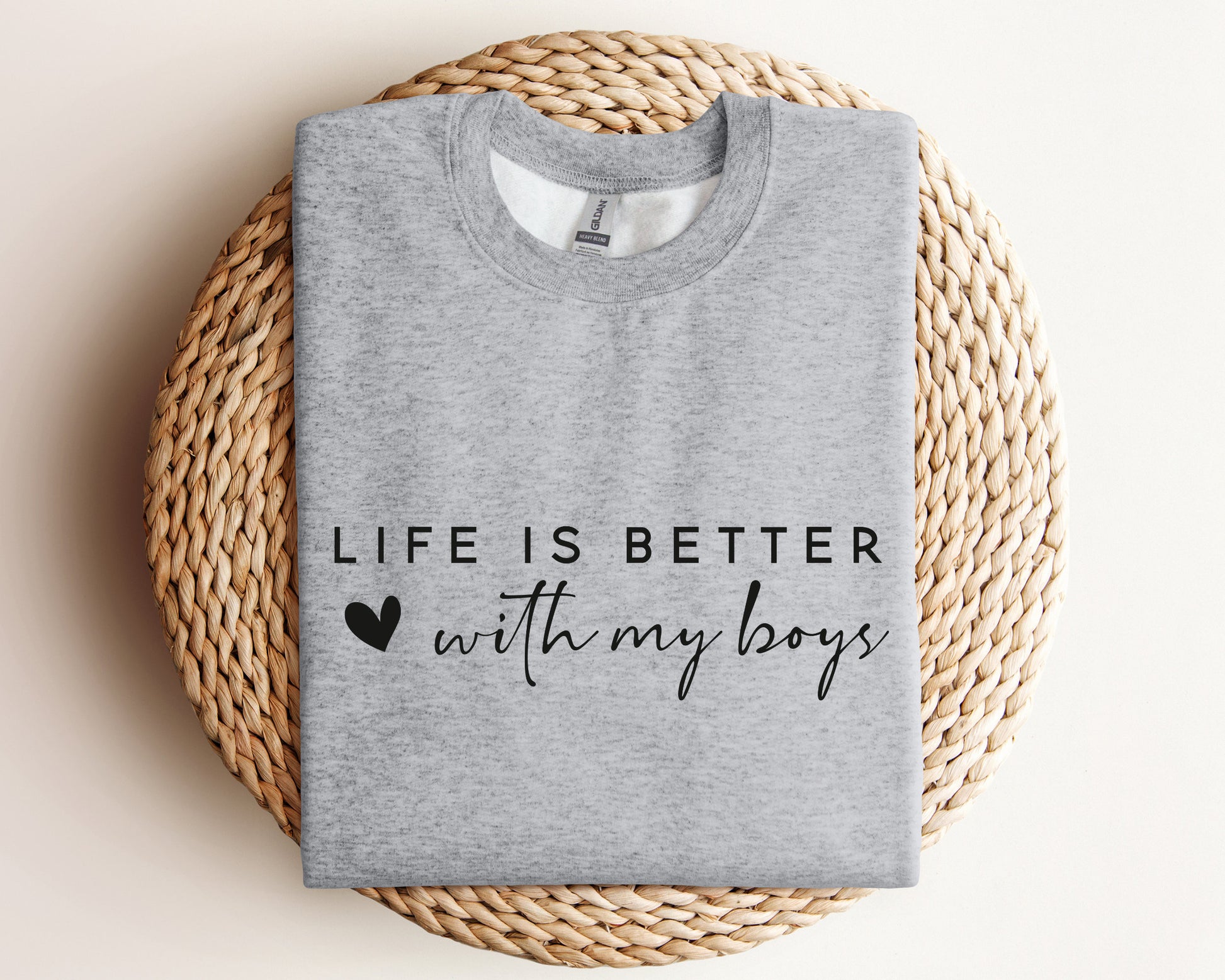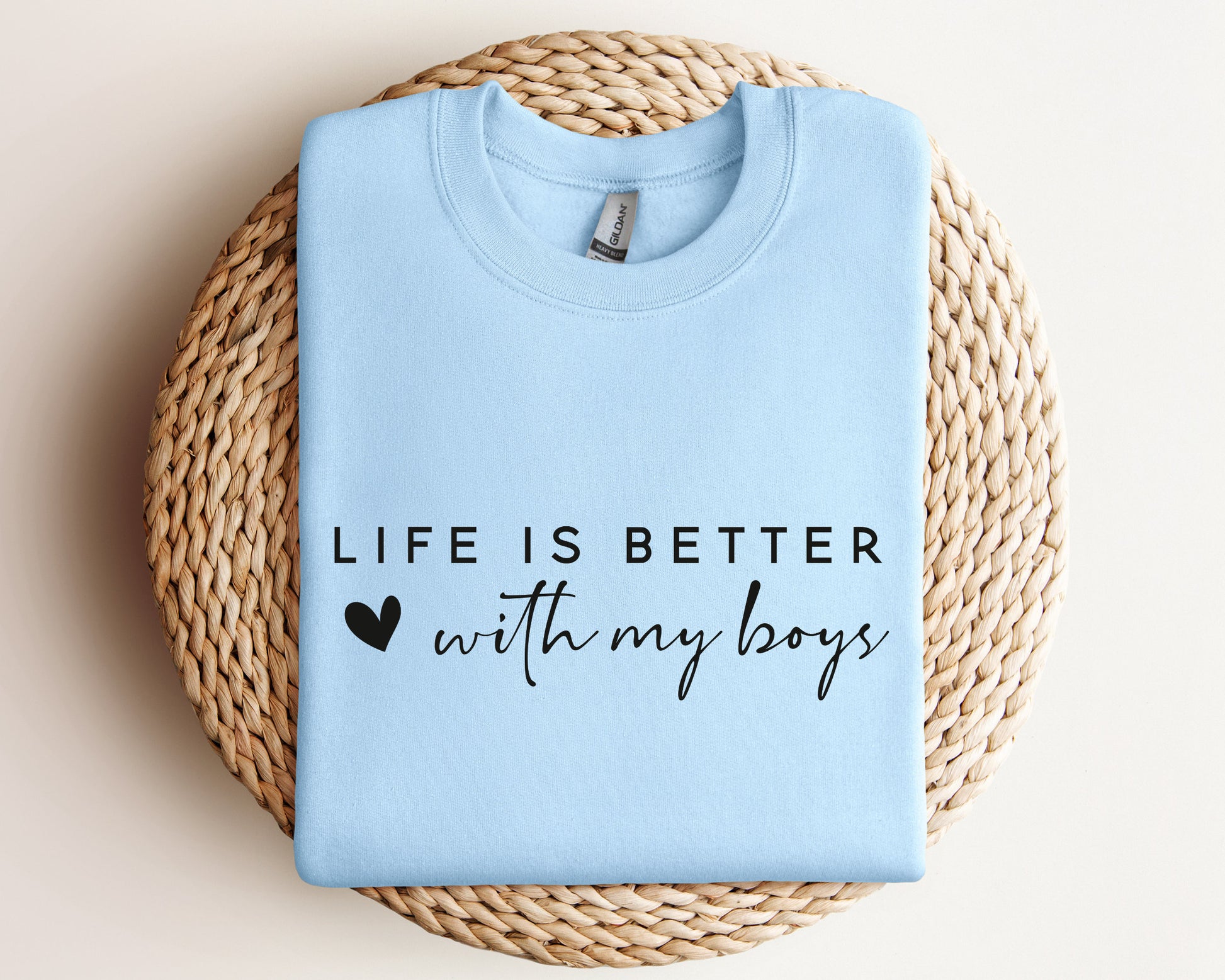 Life is Better With My Boys Sweatshirt and Hoodie, Mom of Boys Sweatshirt, Mom of Boys Crewneck, Mom of Boys Sweater, Gift For Mom