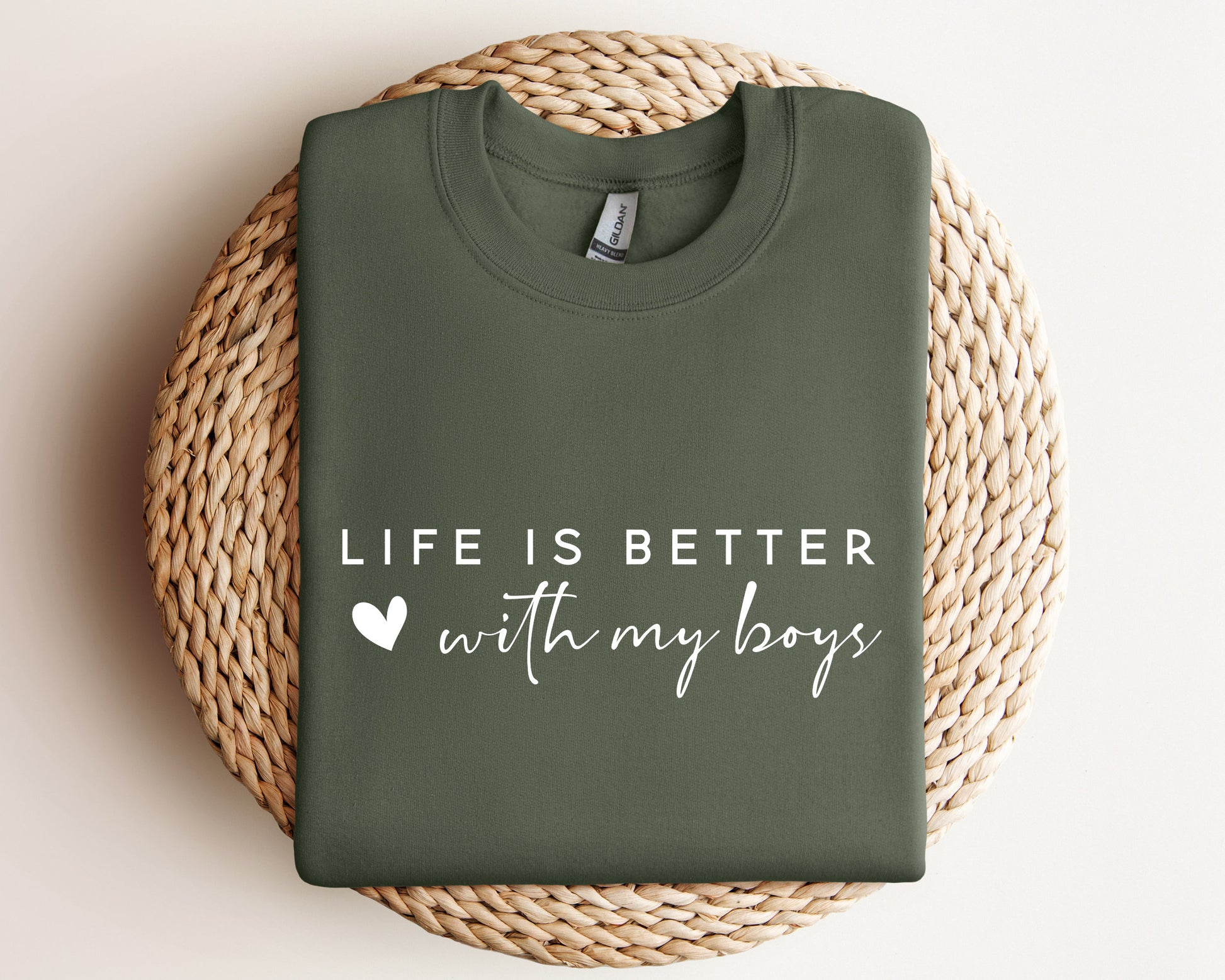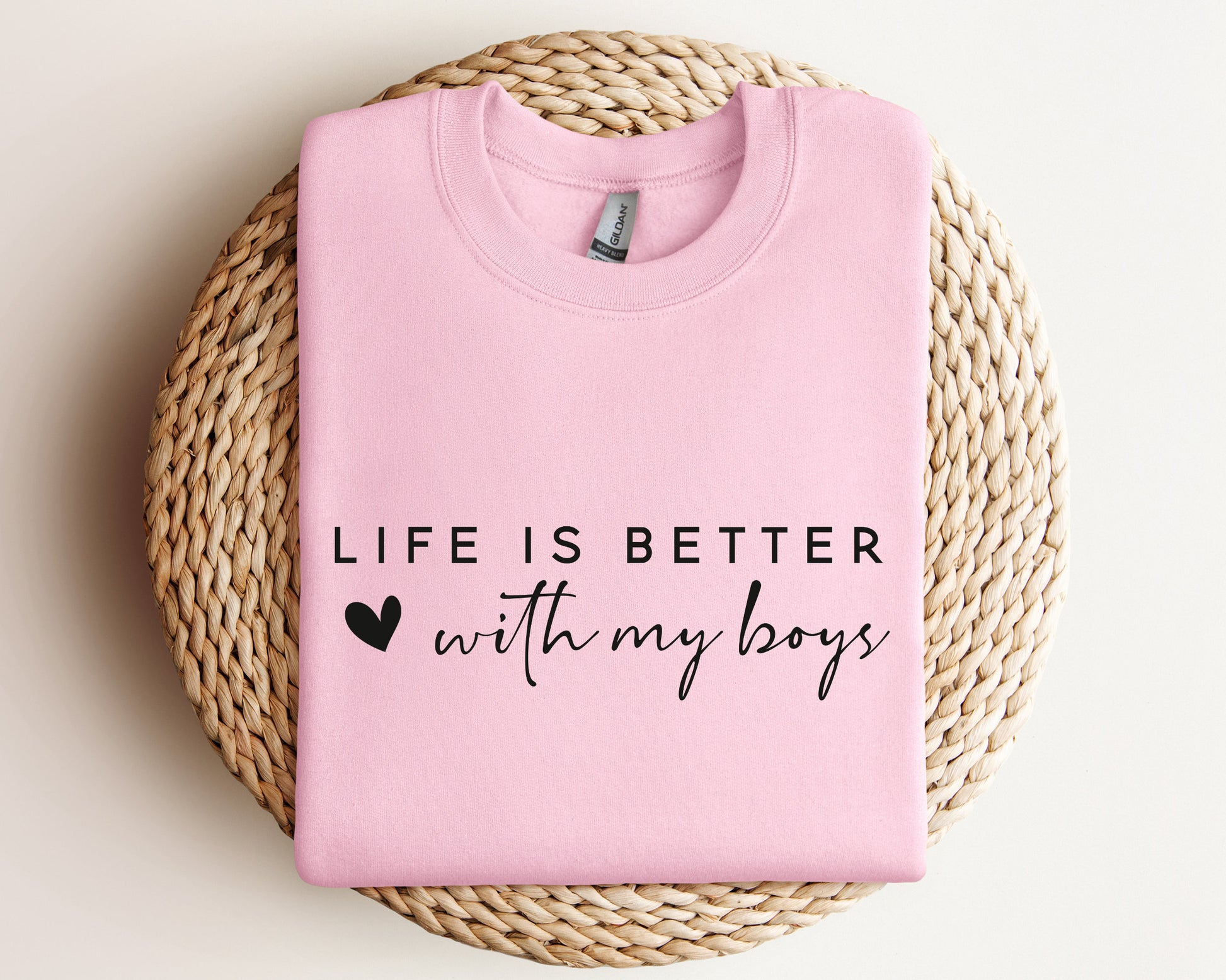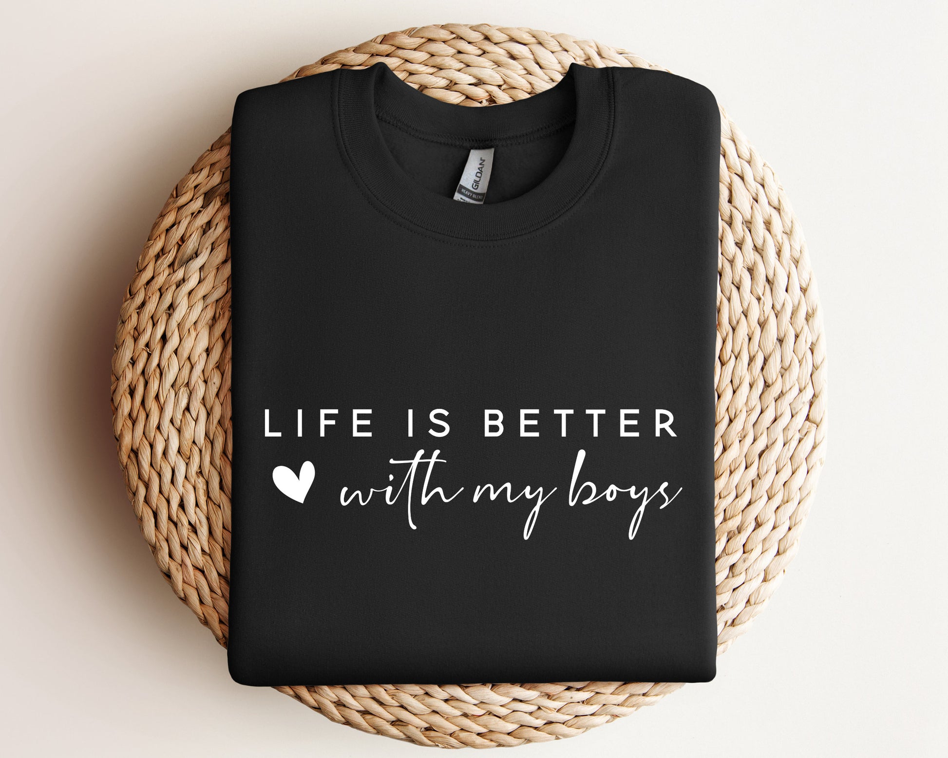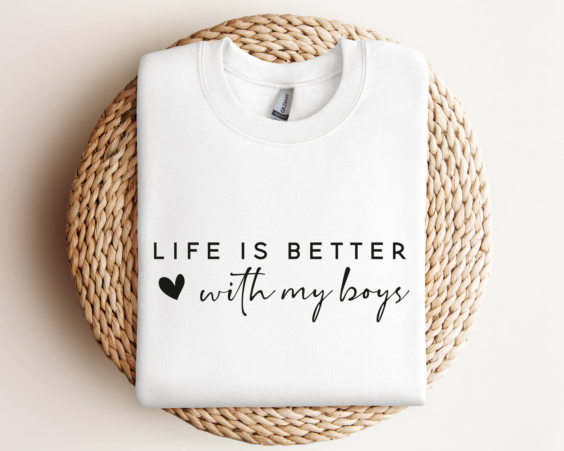 Life is Better With My Boys Sweatshirt and Hoodie, Mom of Boys Sweatshirt, Mom of Boys Crewneck, Mom of Boys Sweater, Gift For Mom