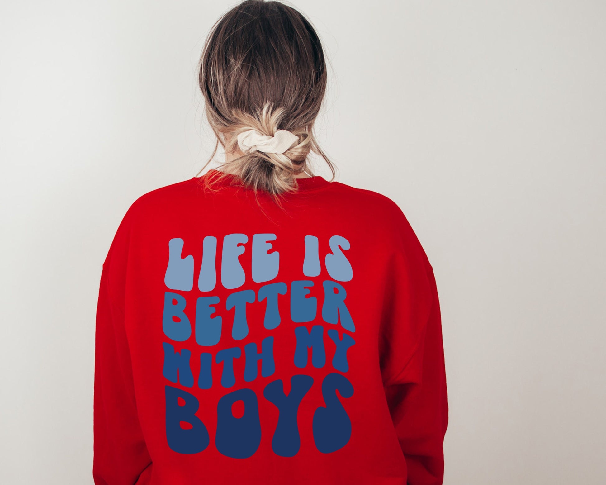 Life Is Better With My Boys Sweatshirt, Boy Mom Hoodie, Boy Mama Sweater, Mom Of Boys, Mother's Day Gift, Gift For Mom, Mama Sweatshirt