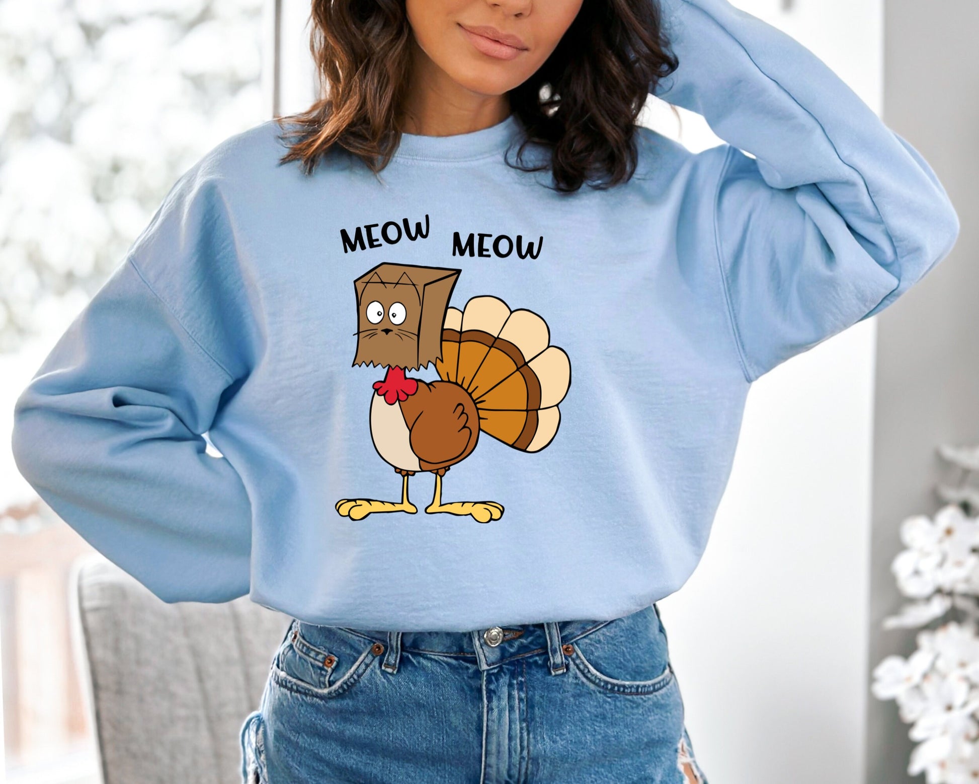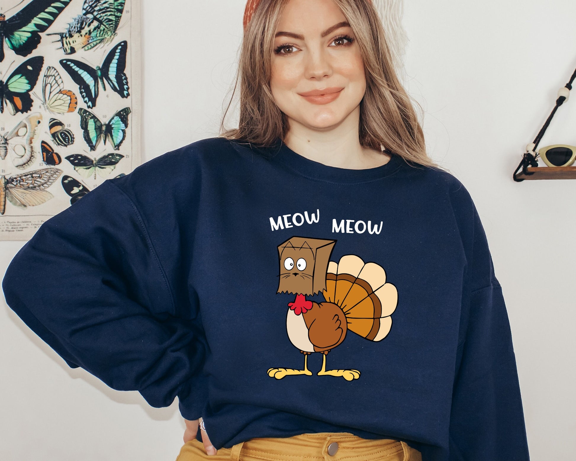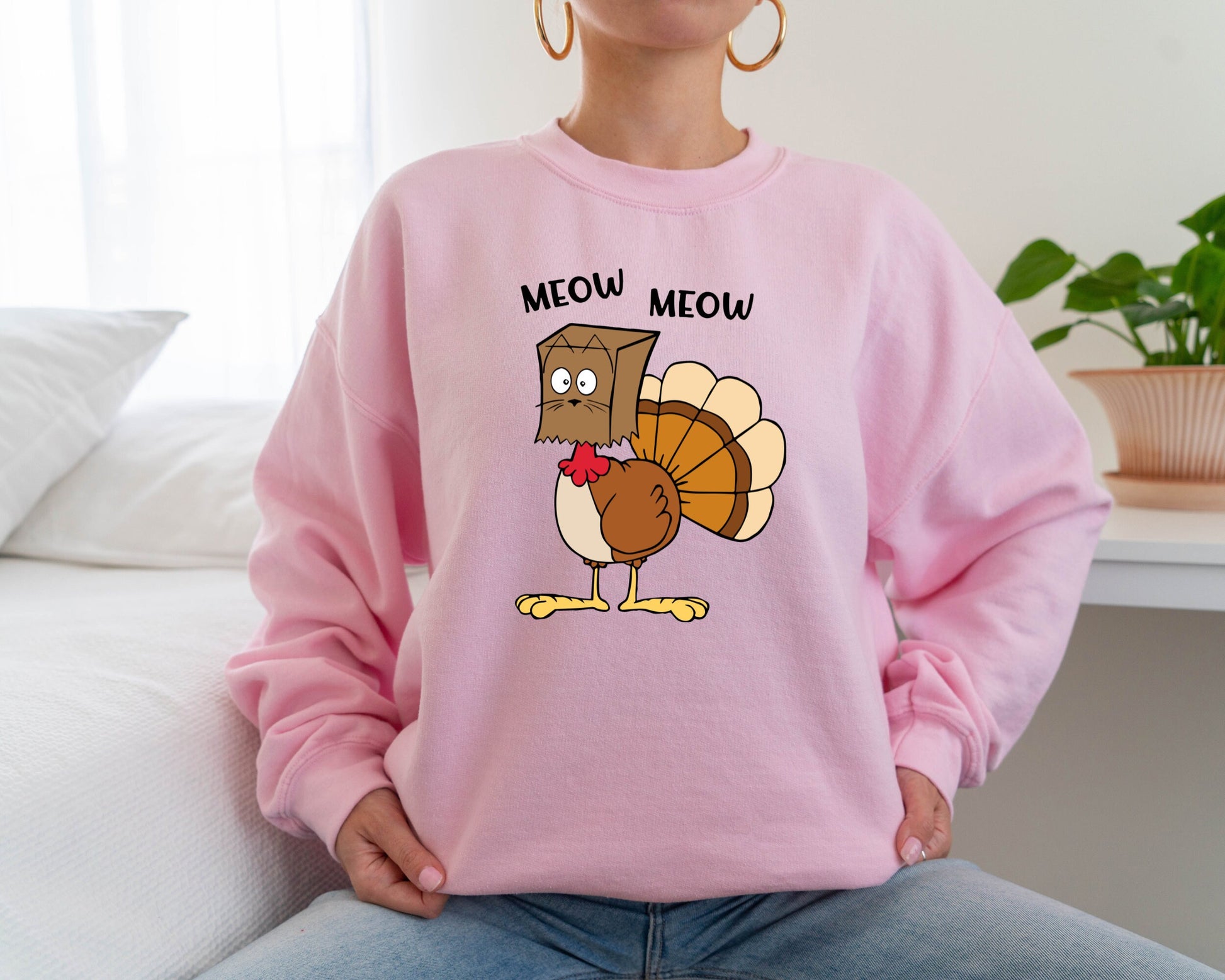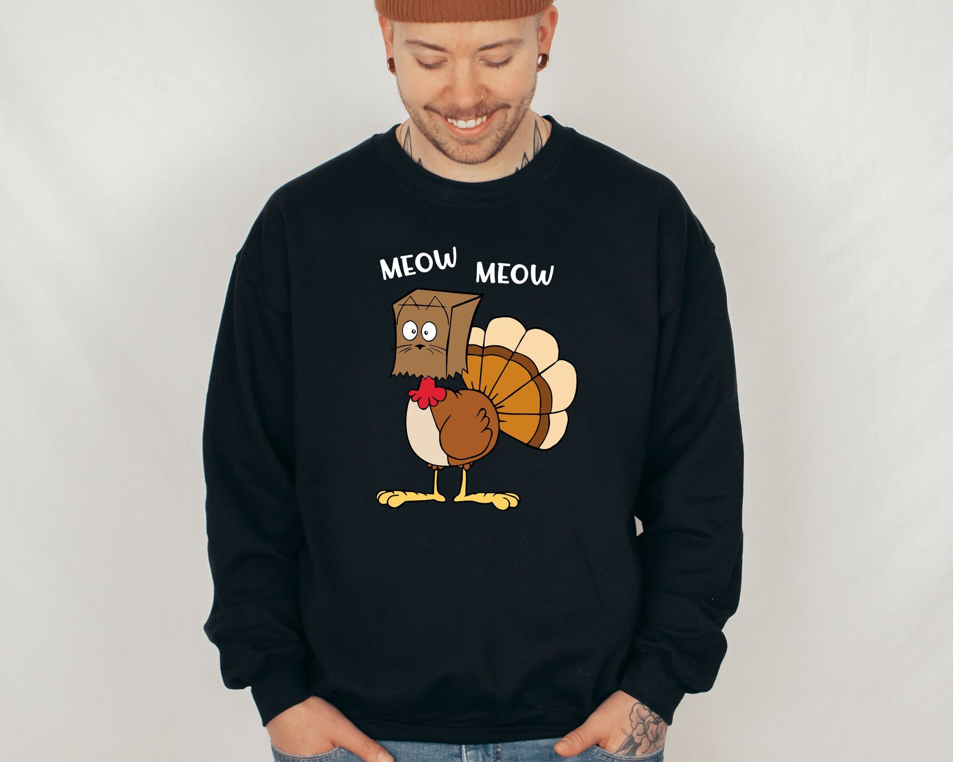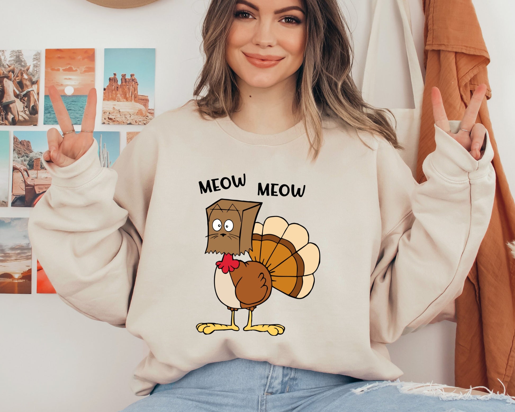 Meow Meow Funny Turkey Thanksgiving Sweatshirt, Thanksgiving Turkey Sweater, Family Thanksgiving Hoodie, Thanksgiving Hoodie, Autumn Sweater