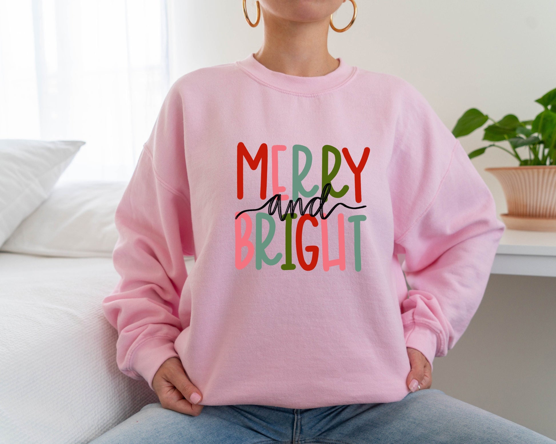 Merry and Bright Sweatshirt, Christmas Hoodie, Family Christmas Sweatshirt, Christmas Sweatshirts for Women, Merry Christmas Sweatshirt