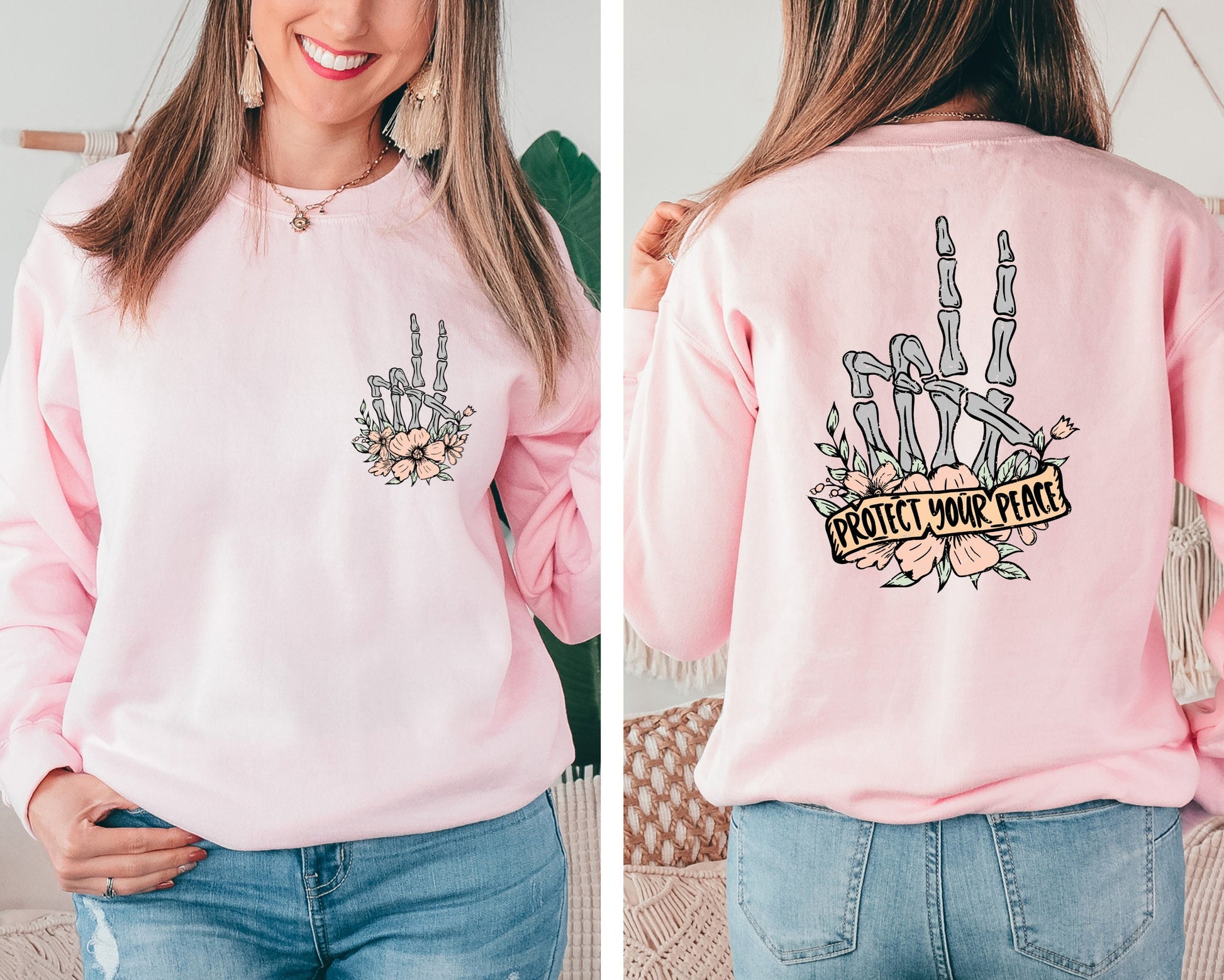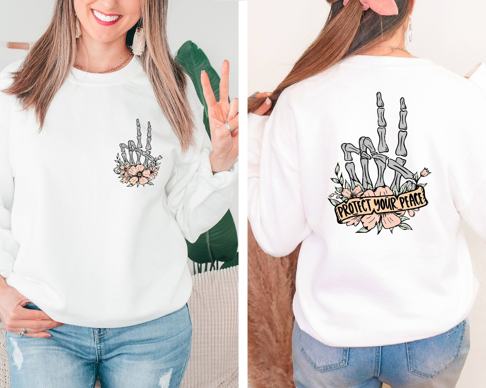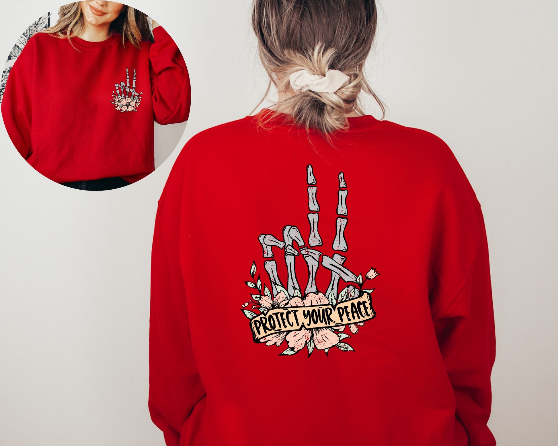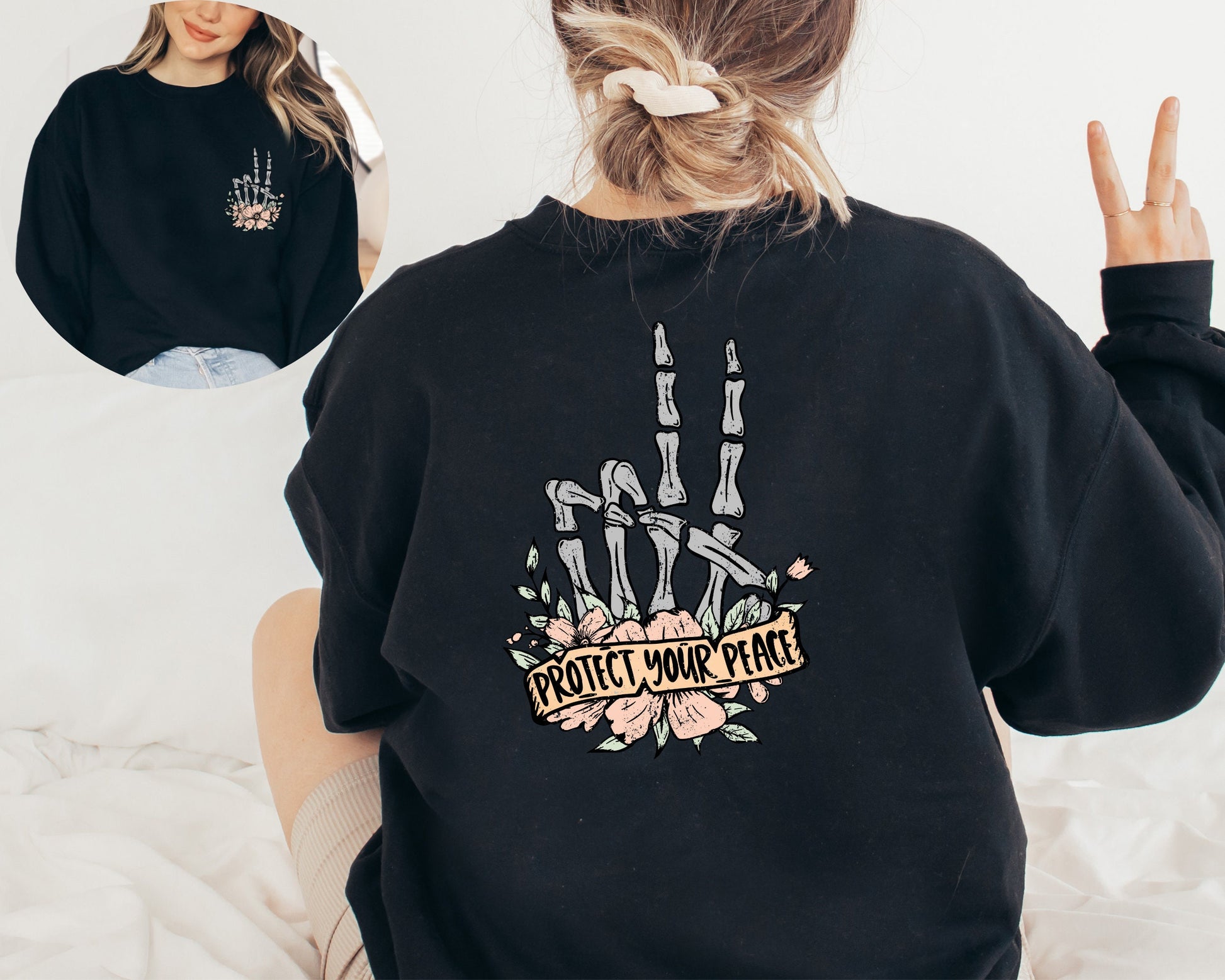 Protect Your Peace Sweatshirt, Flower Skull Sweater, Skeleton Hand Hoodie, Motivational Sweatshirt, Dead Inside Sweater, Positive Crewneck