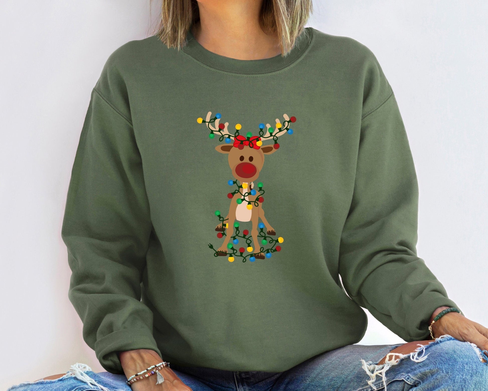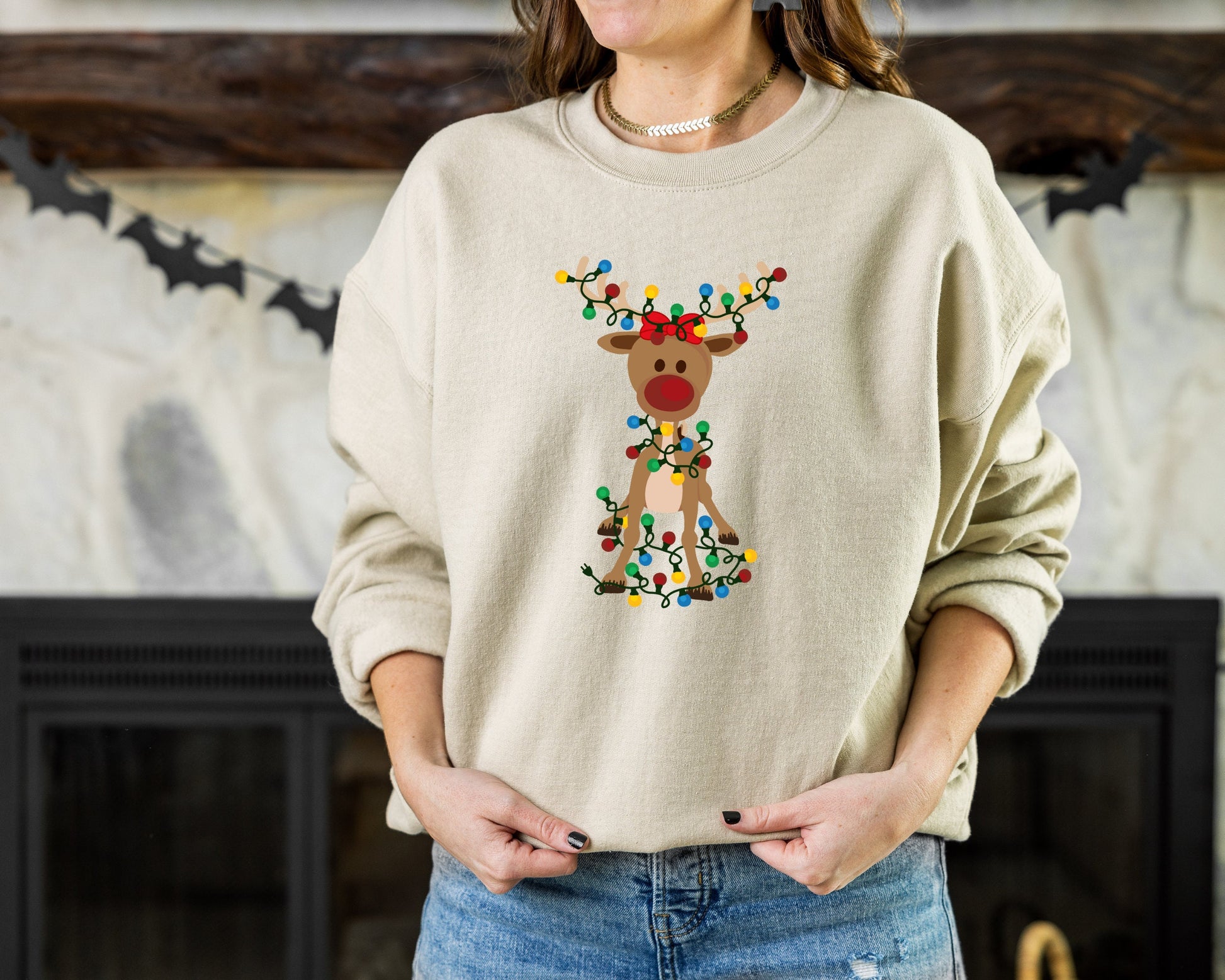 Reindeer Christmas Sweatshirt, Christmas Family Sweatshirt, Christmas Lights Sweatshirt, Merry Christmas Hoodie, Christmas Antler Shirt