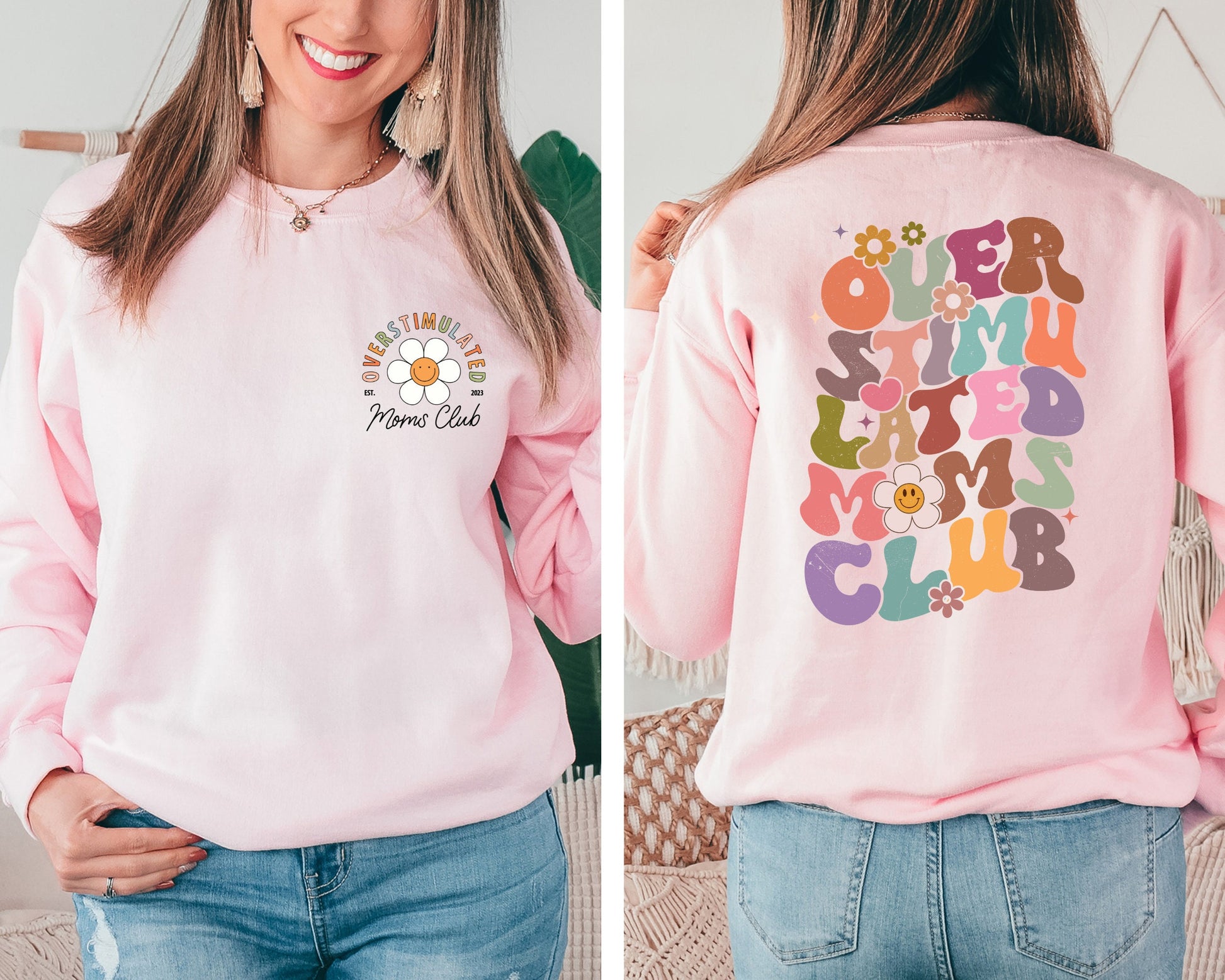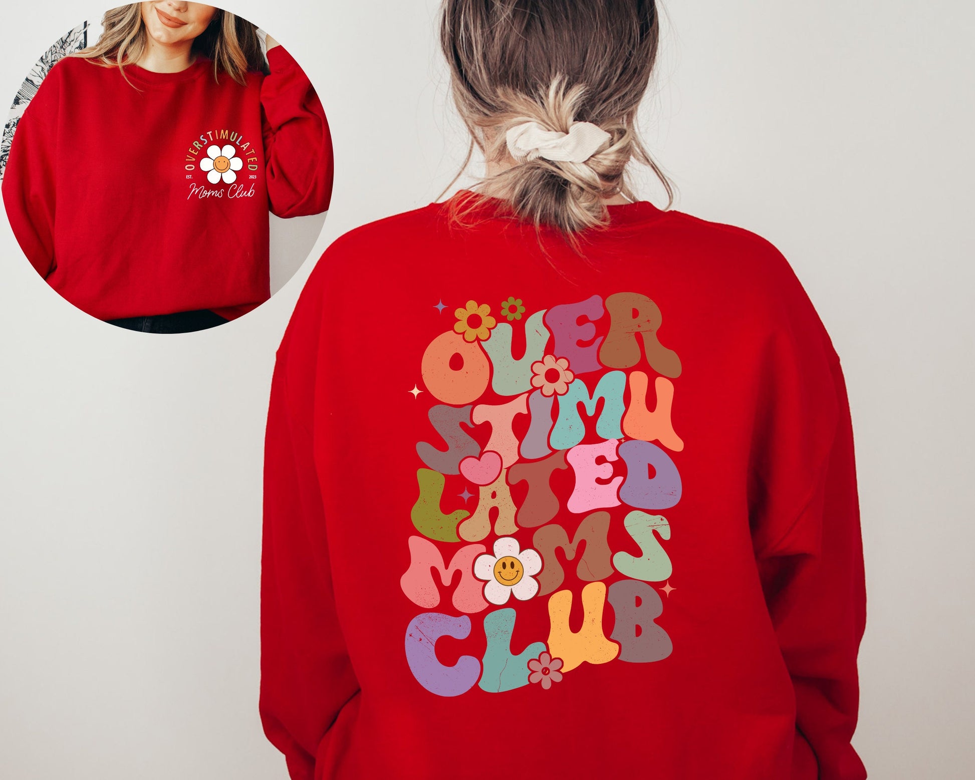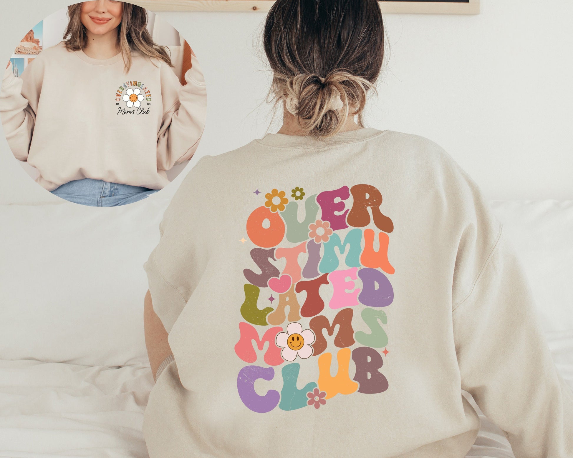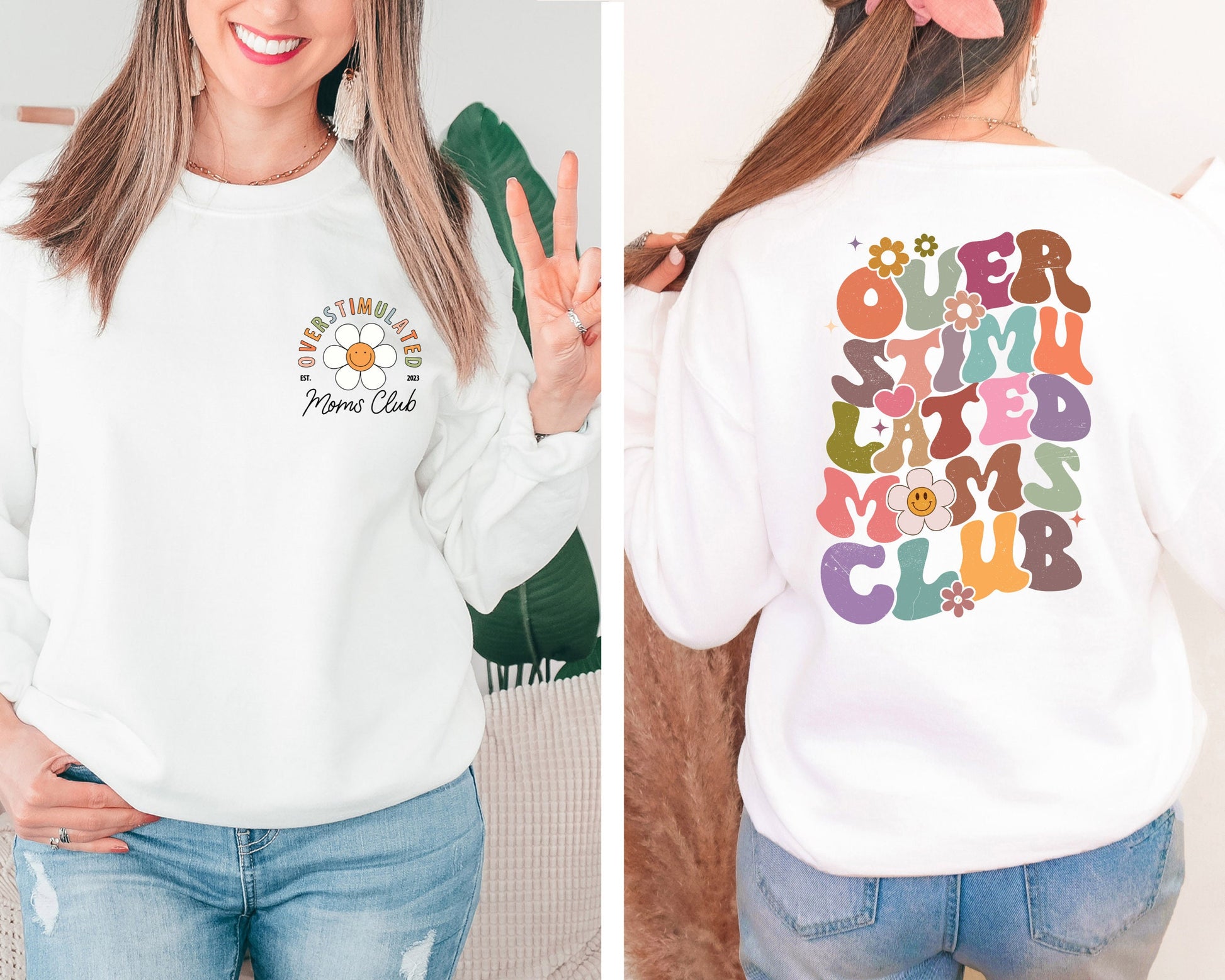 Retro Overstimulated Moms Club Back and Front Sweatshirt, Gift for Mom Sweatshirt, Funny Sweatshirt, Overstimulated Moms Club Sweatshirt