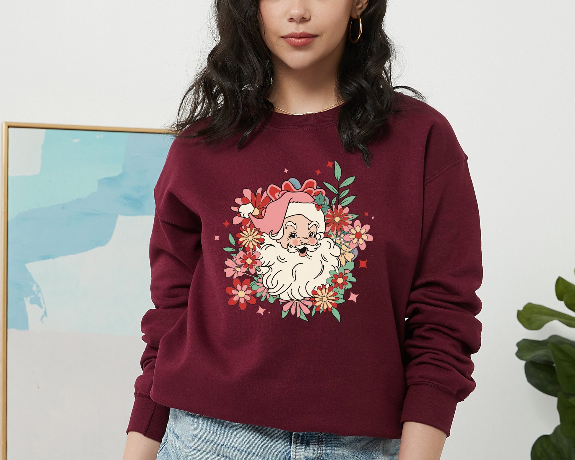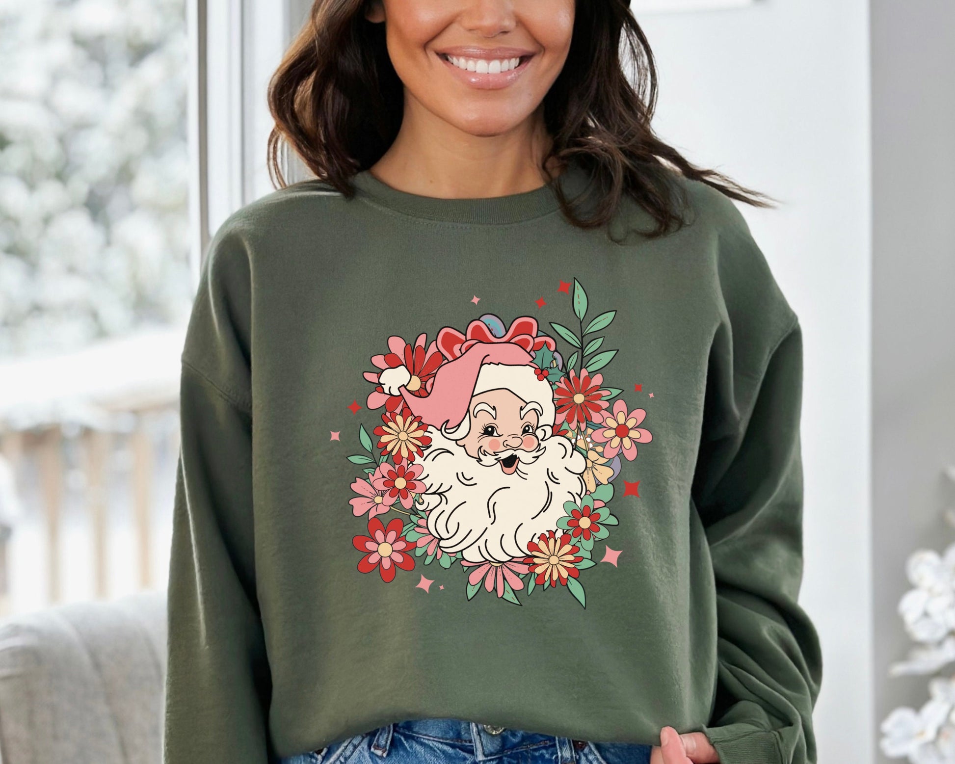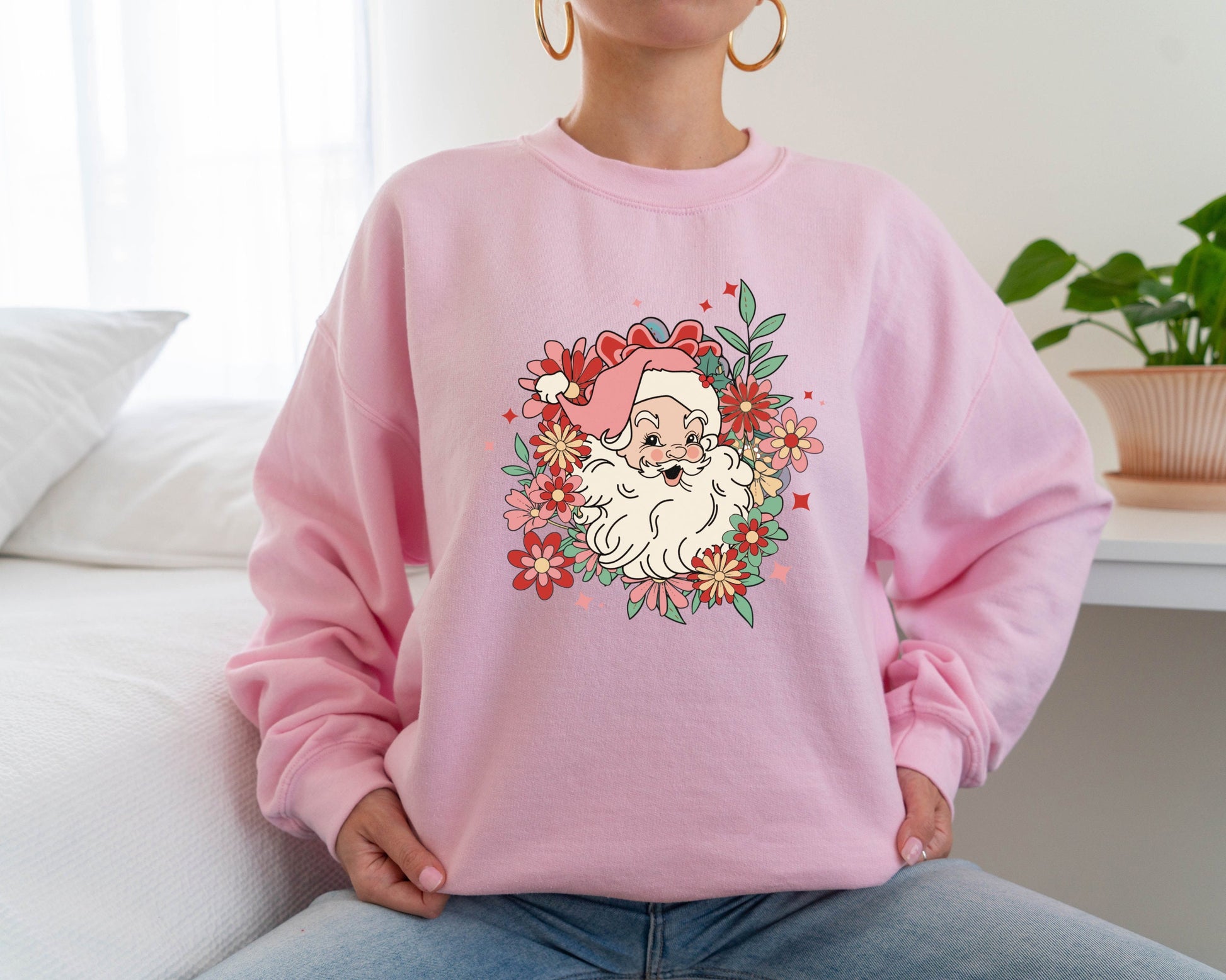 Santa Sweatshirt, Santa Flower Sweater, Santa Flower Hoodie, Merry Christmas Hoodie, Santa Graphic Sweatshirt, Classic Christmas Sweater