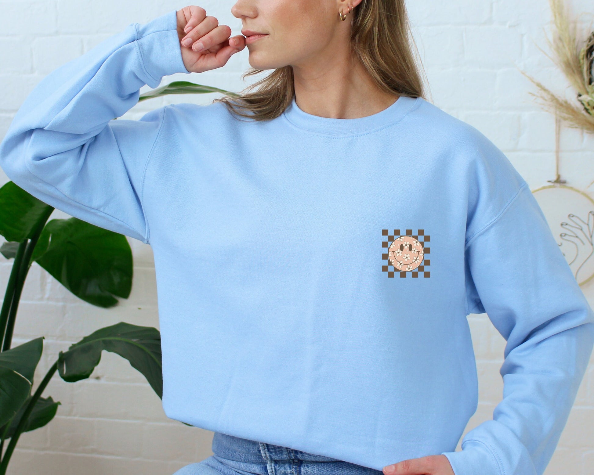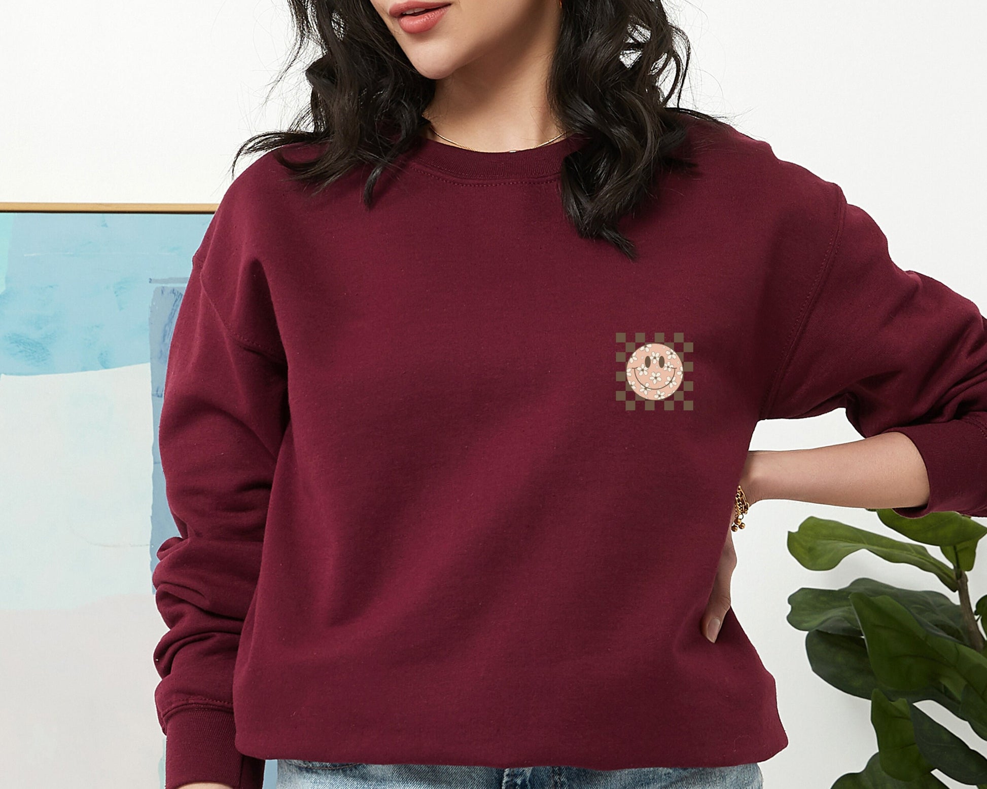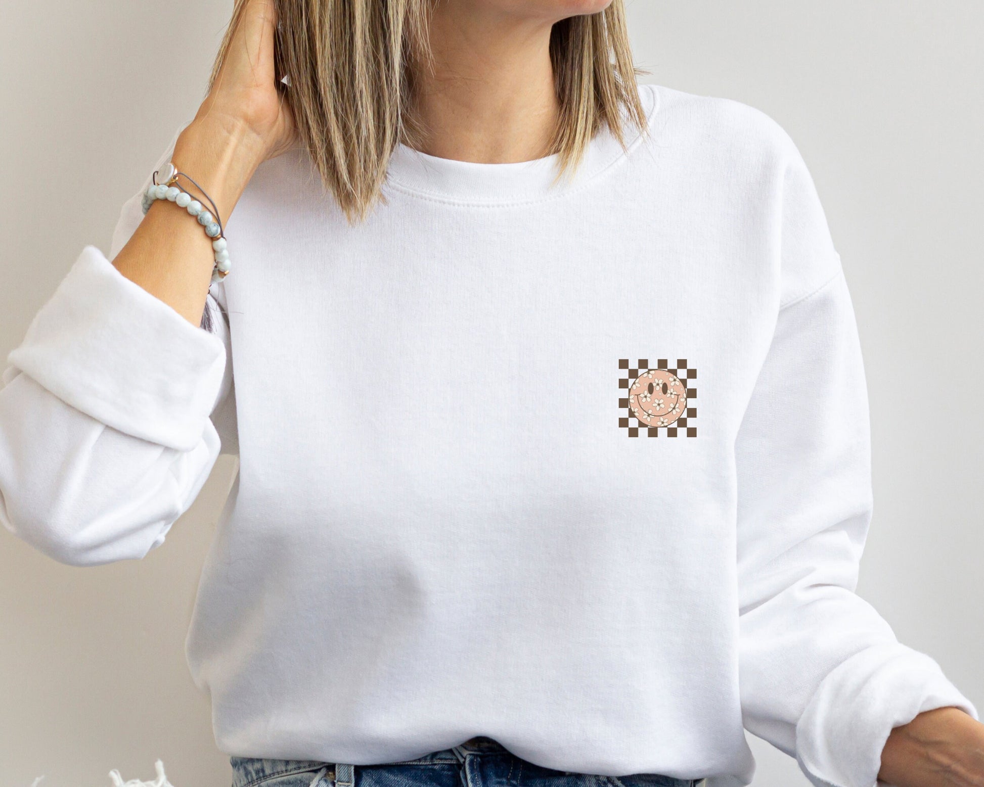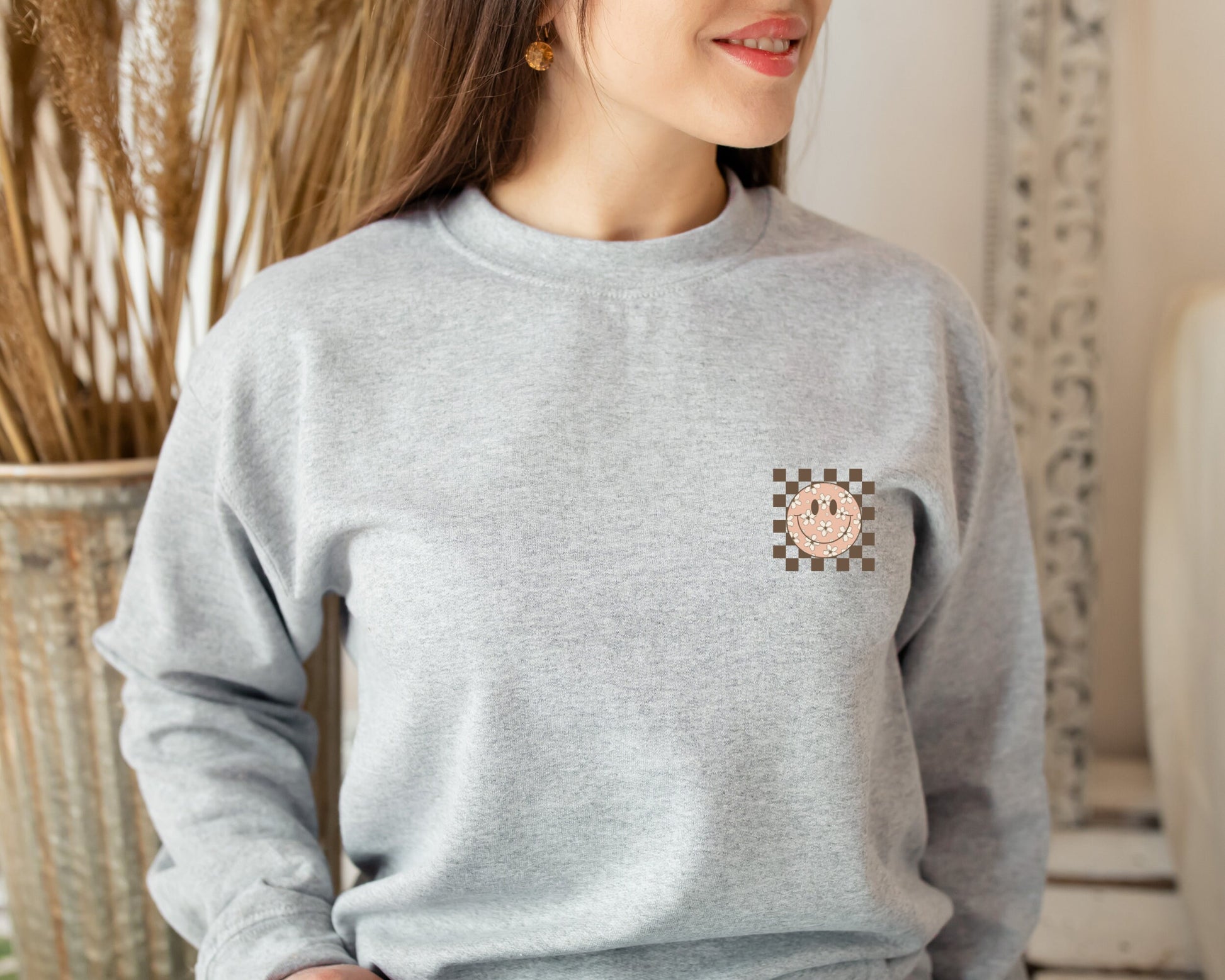 Smiling Flower Sweatshirt, Trendy Smile Face Sweatshirt, Sweatshirt for Women, Happy Face Hoodie, Retro Smile Sweatshirt, Birthday Gift