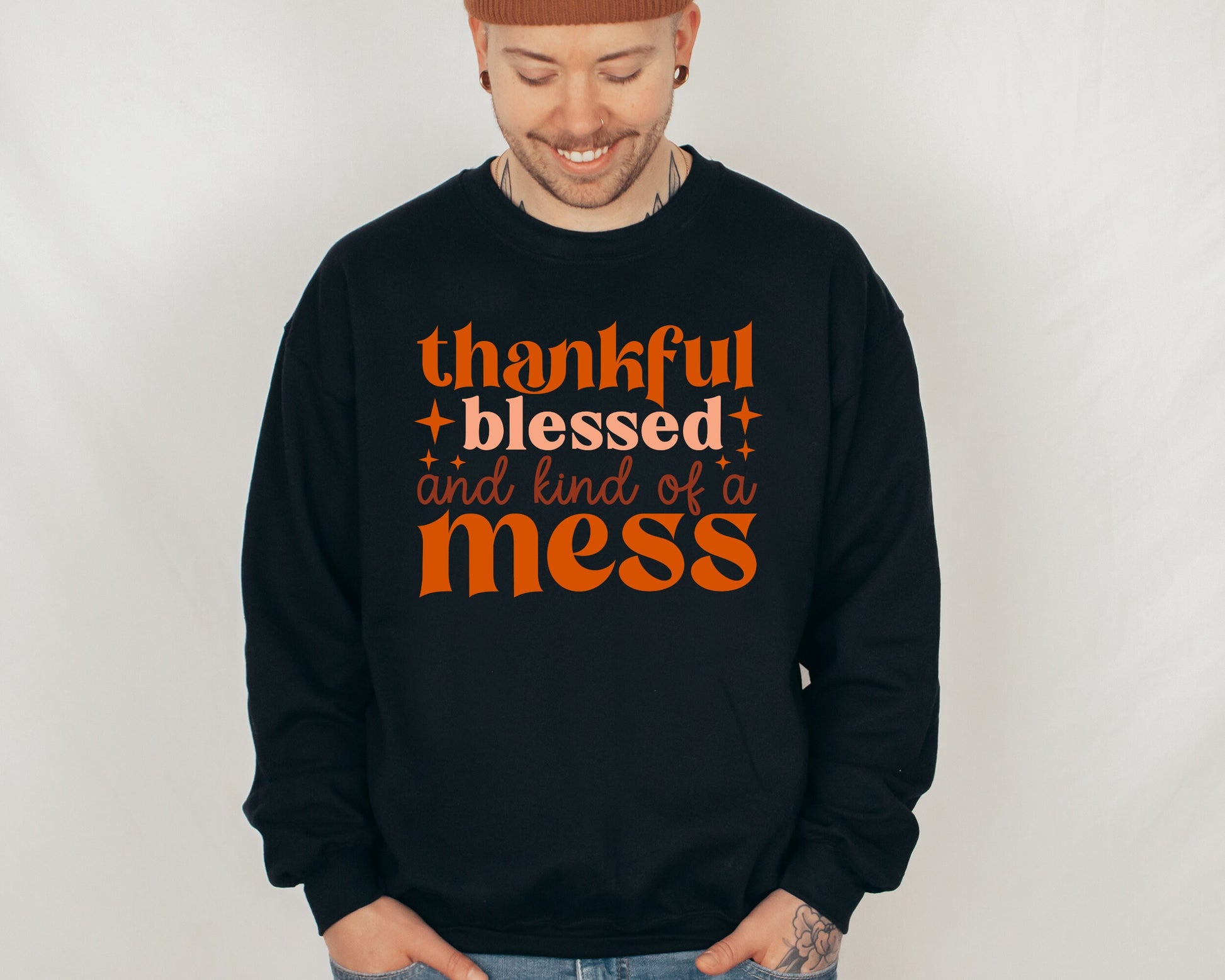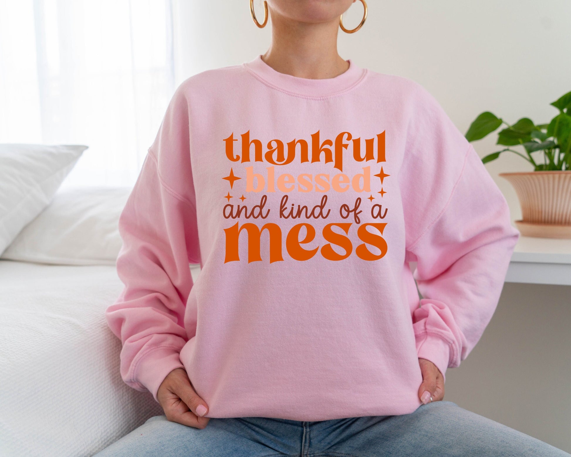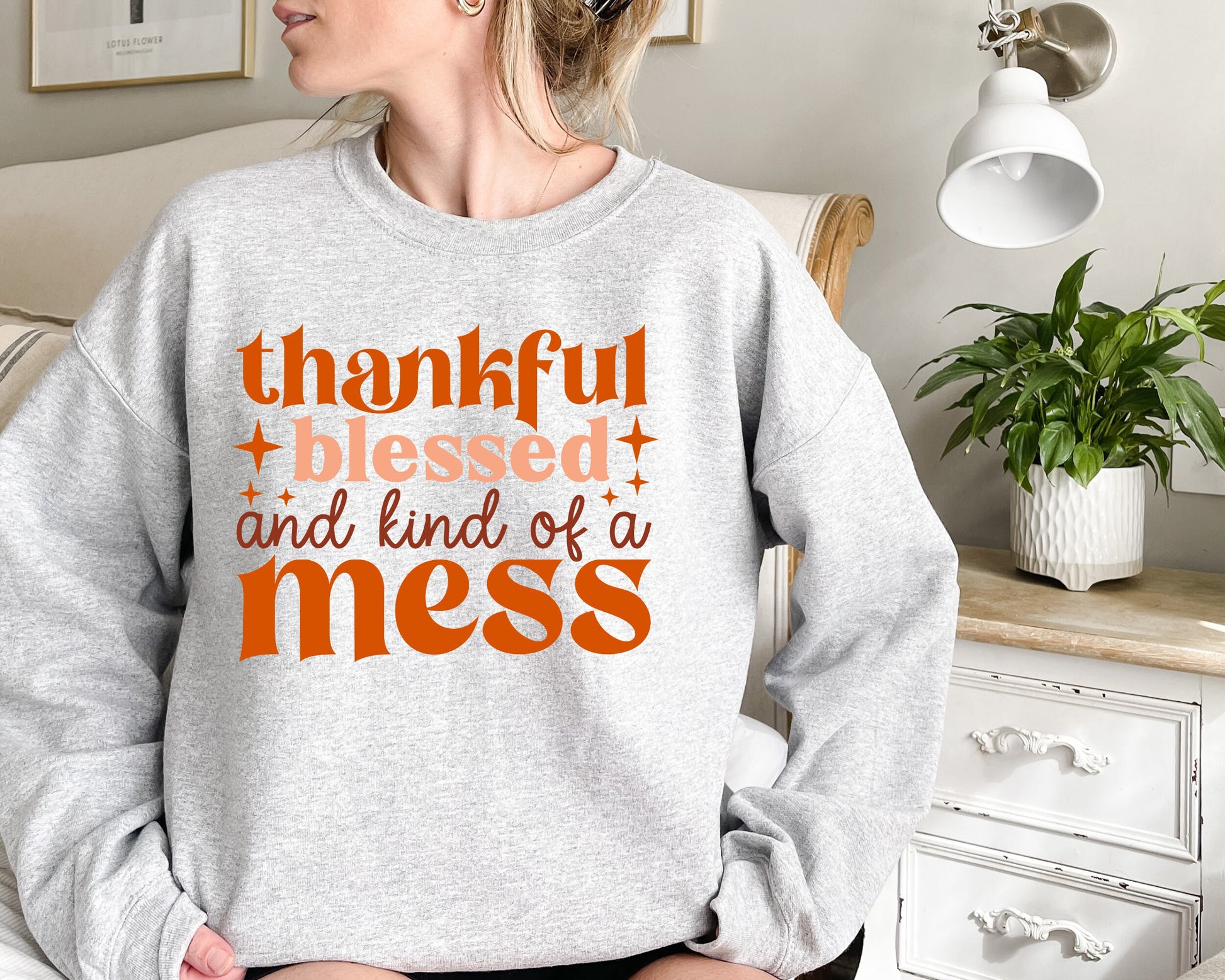 Thankful Blessed And Kind Of A Mess Sweatshirt, Autumn Sweatshirt, Teacher Thanksgiving Shirt Fall Sweater, Oversized Sweatshirt