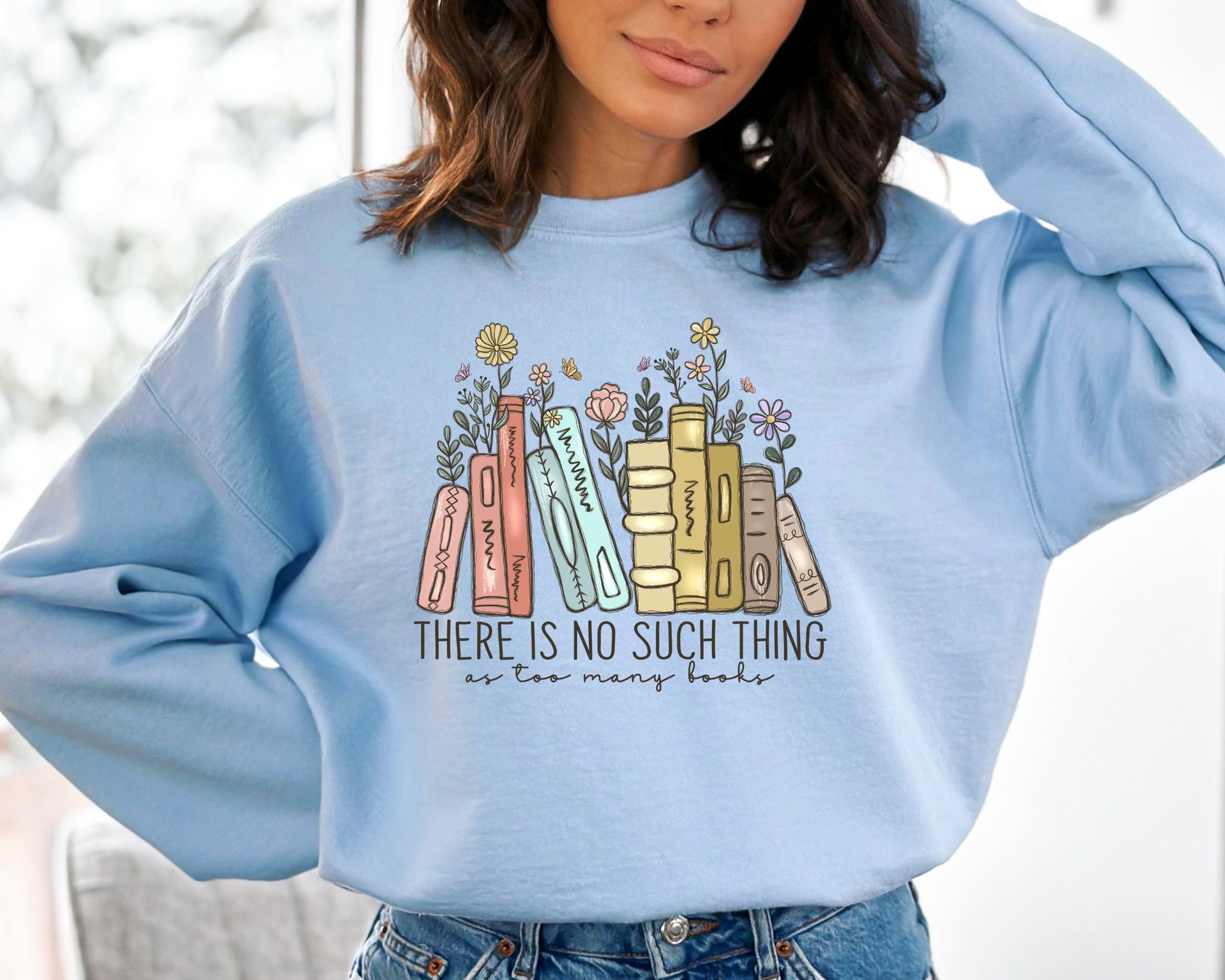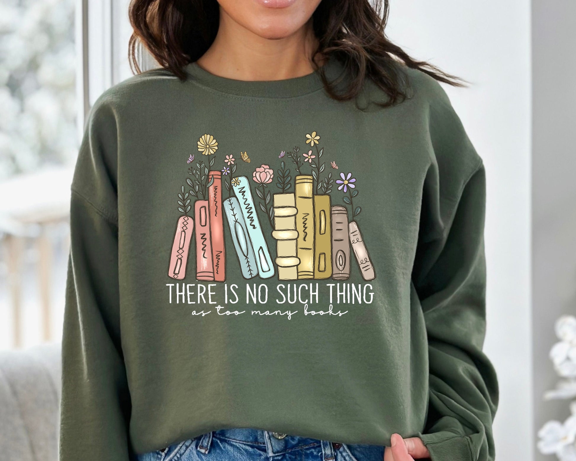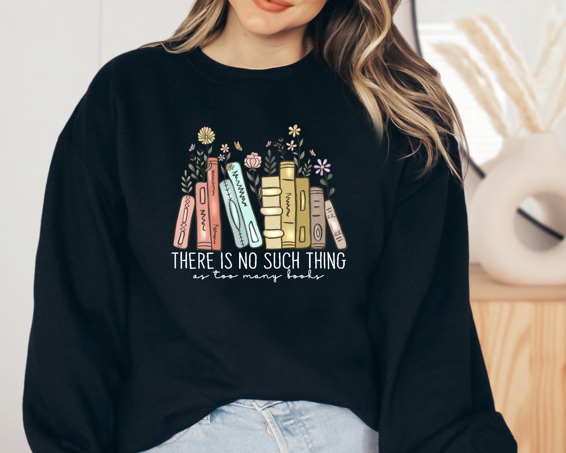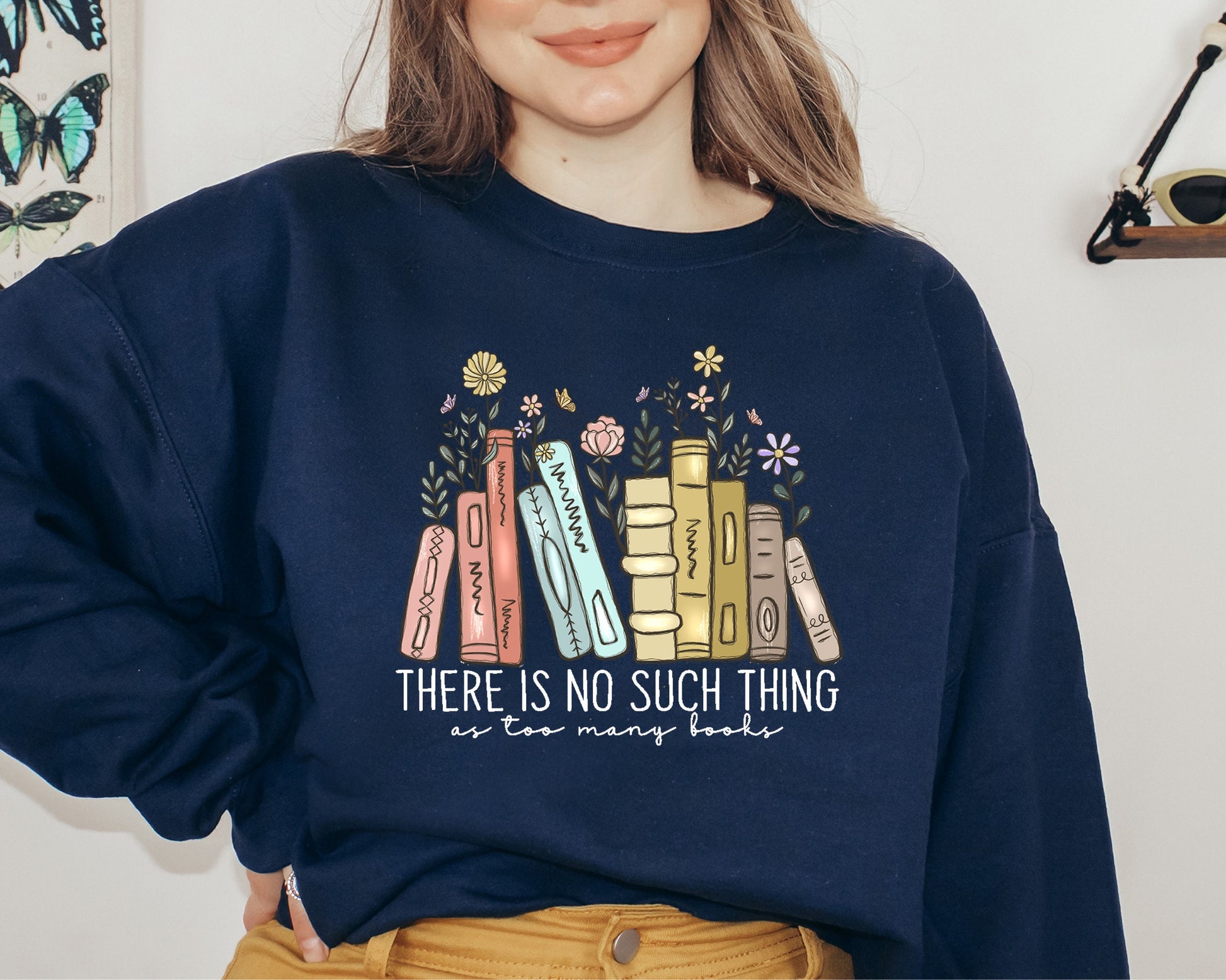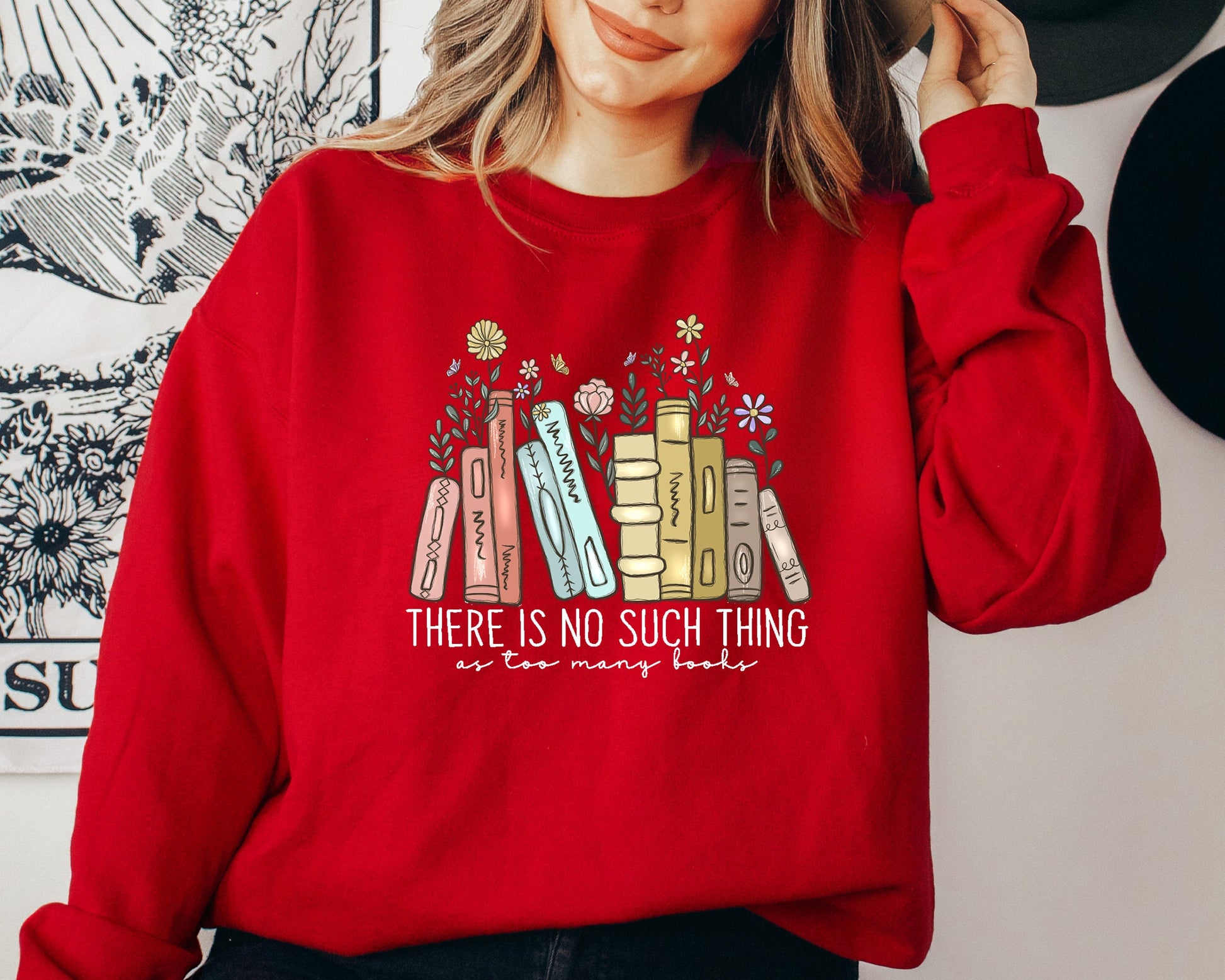 There Is No Such, Thing As Too Many Books, Bookish Sweater, Floral Books Sweatshirt, Gift for Librarian, Book Nerd Sweater, Book Sweatshirt